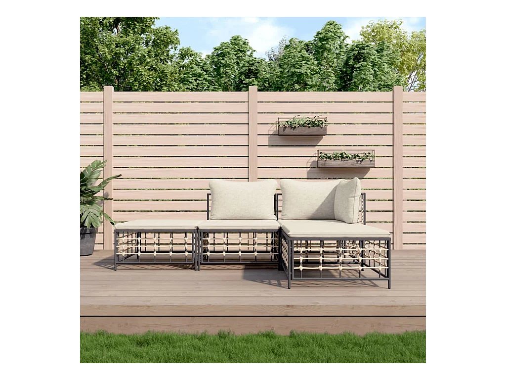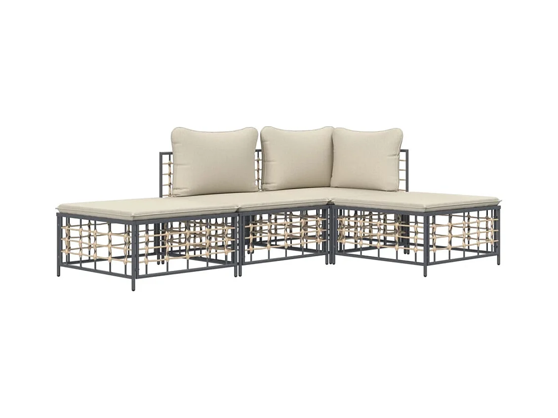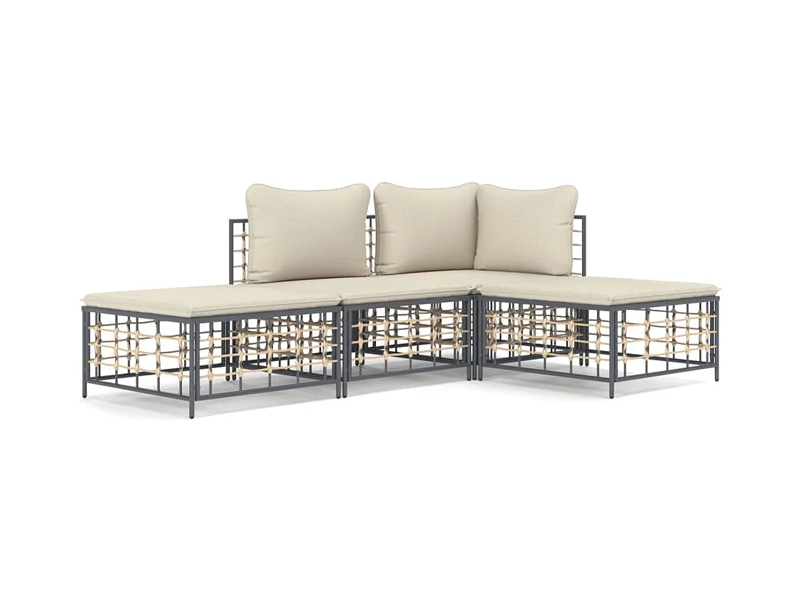Salon de jardin 4 pcs avec coussins anthracite résine tressée REO10313