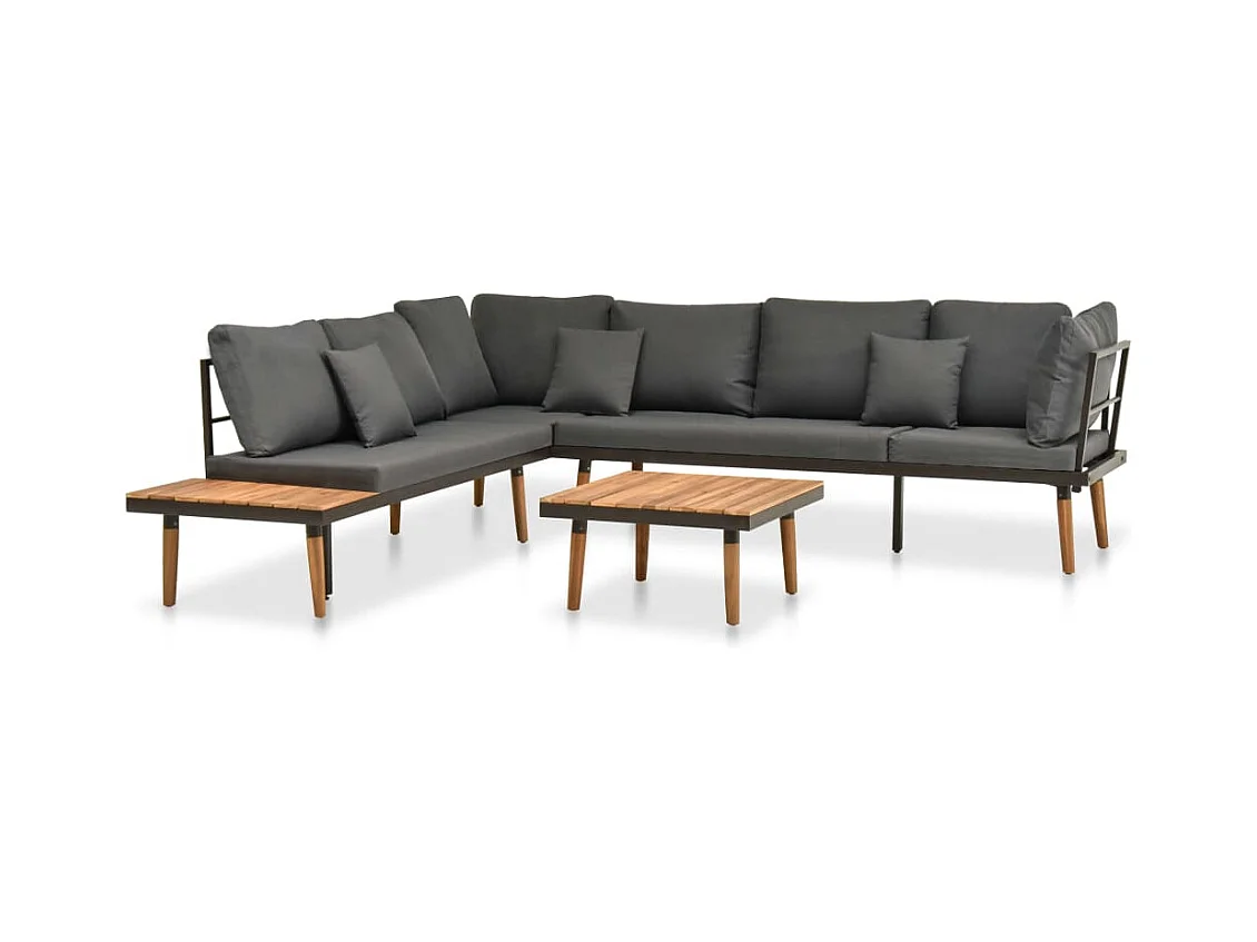 Salon de jardin 6 pcs avec coussin Bois d'acacia solide