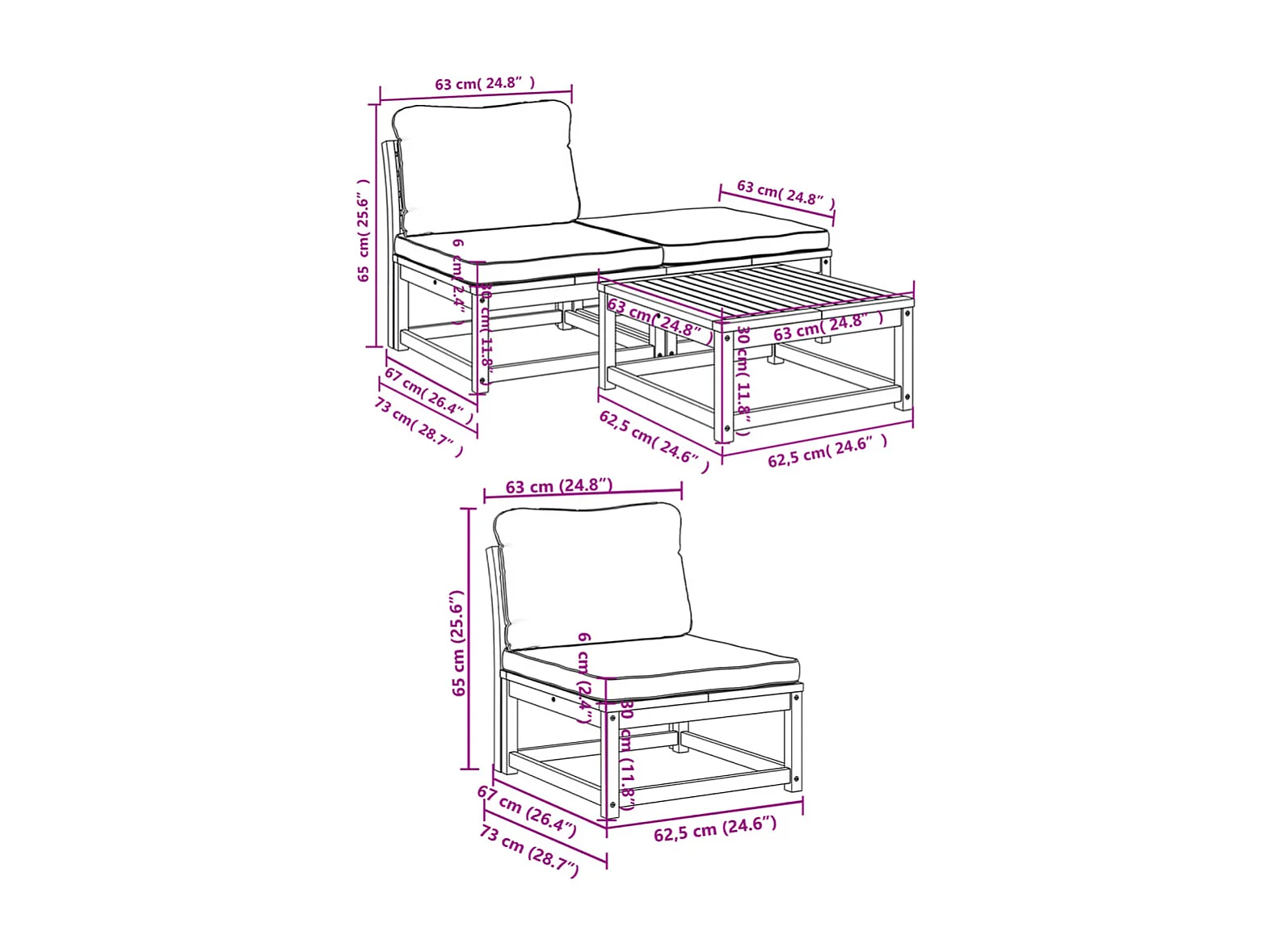 Salon de jardin 4 pcs avec coussins Bois d'acacia solide