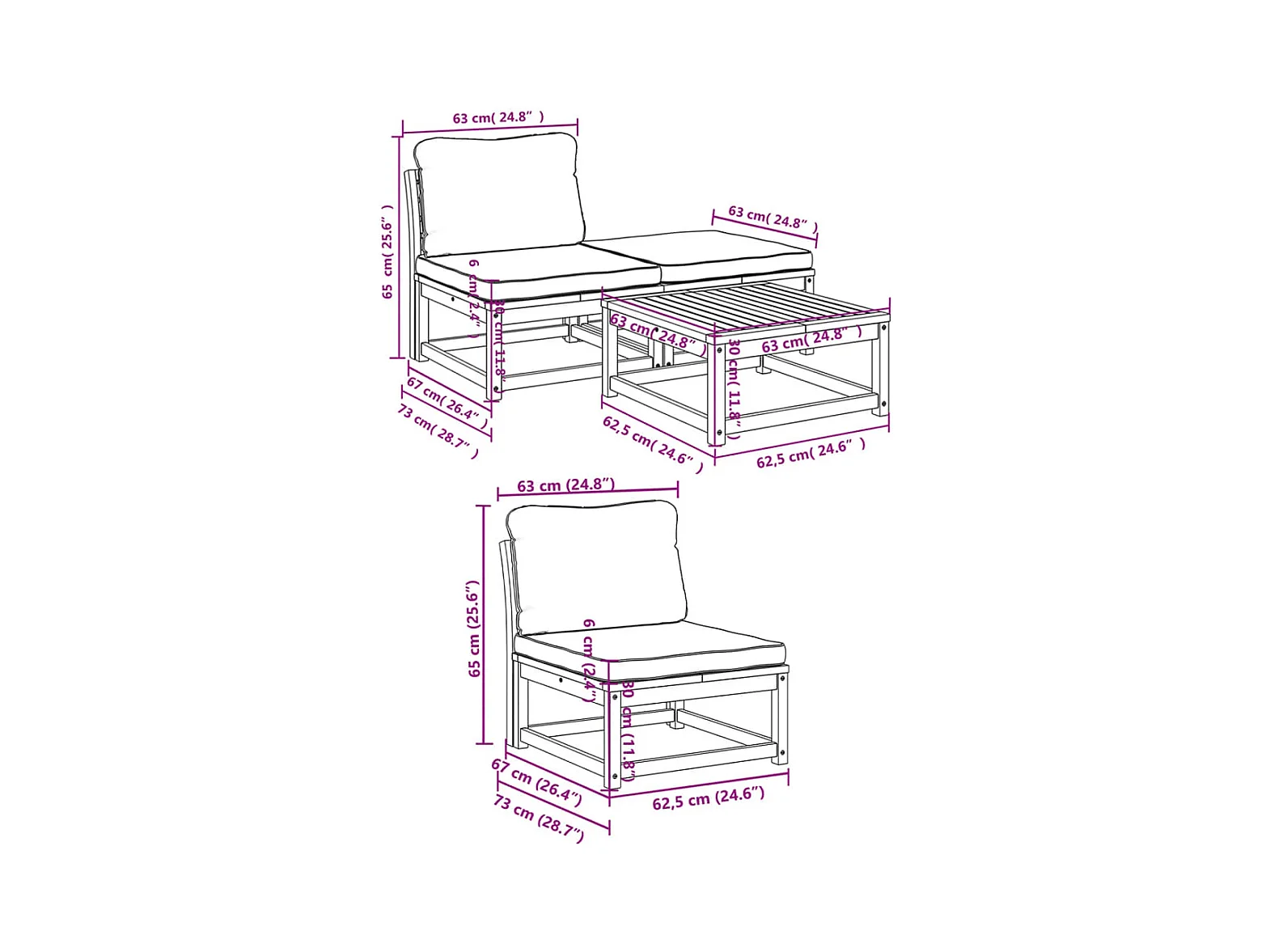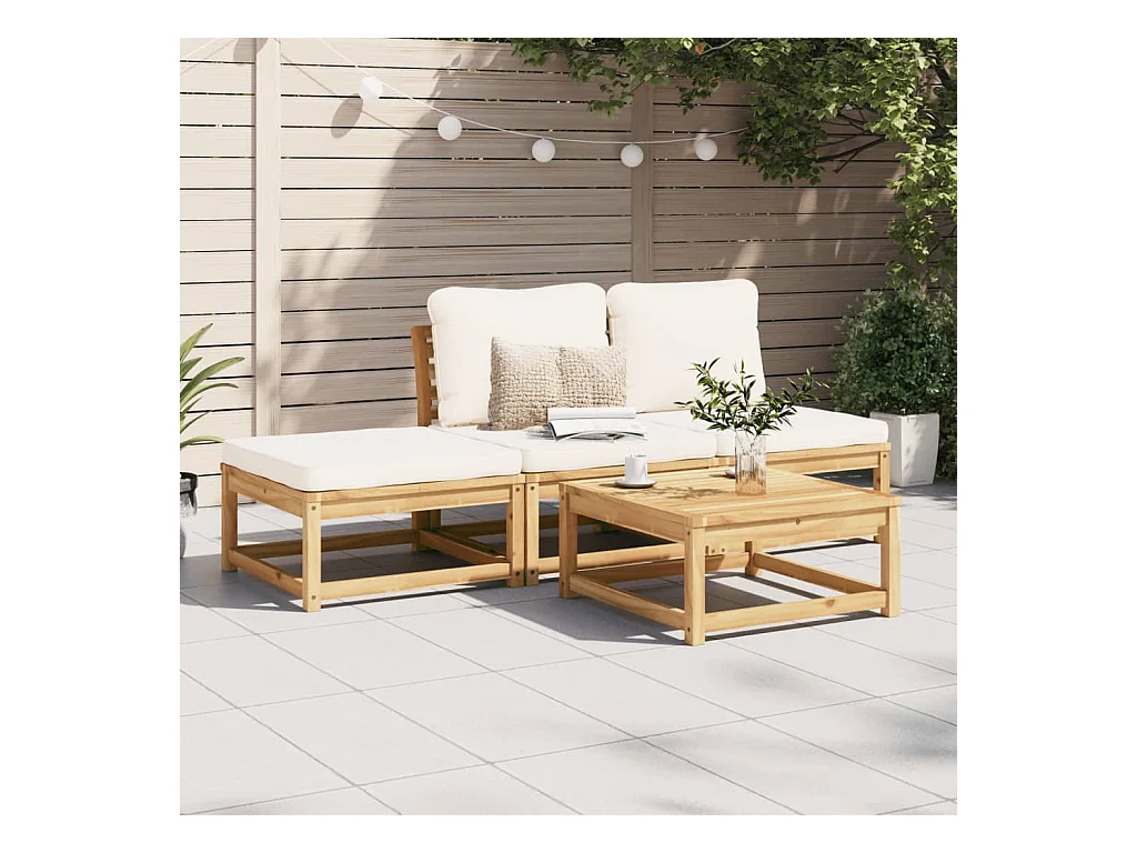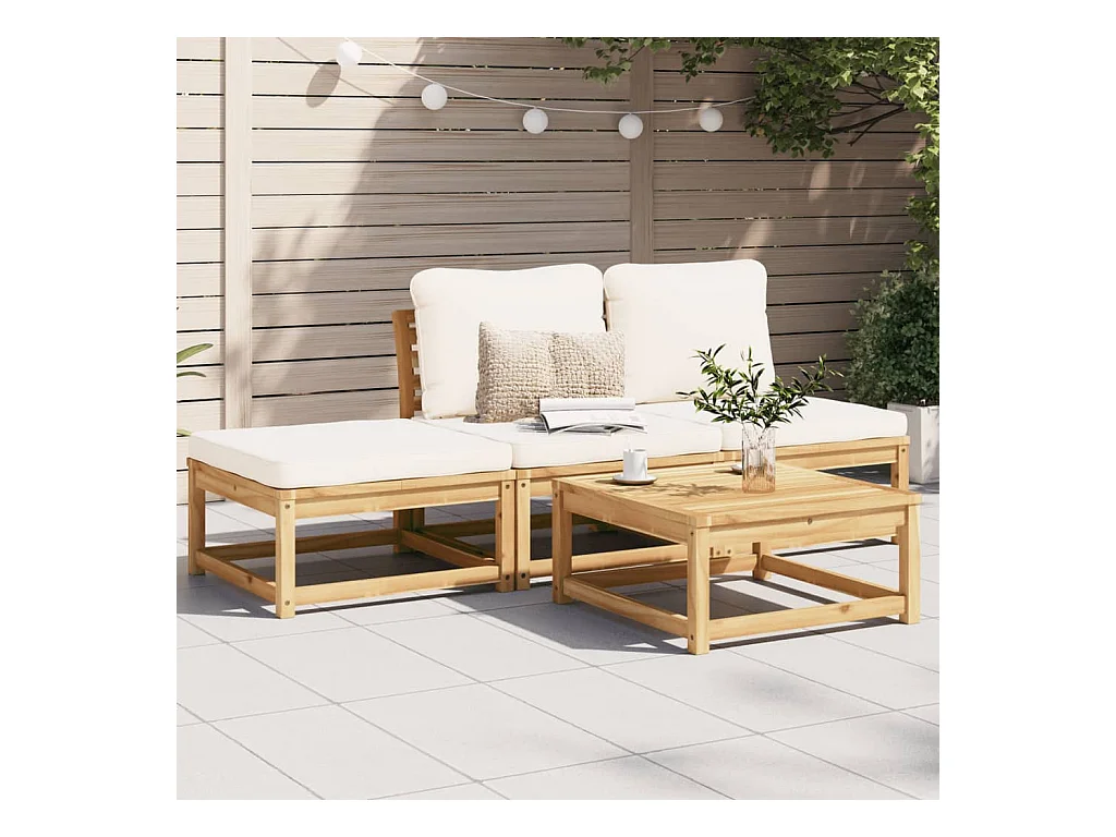 Salon de jardin 4 pcs avec coussins Bois d'acacia solide