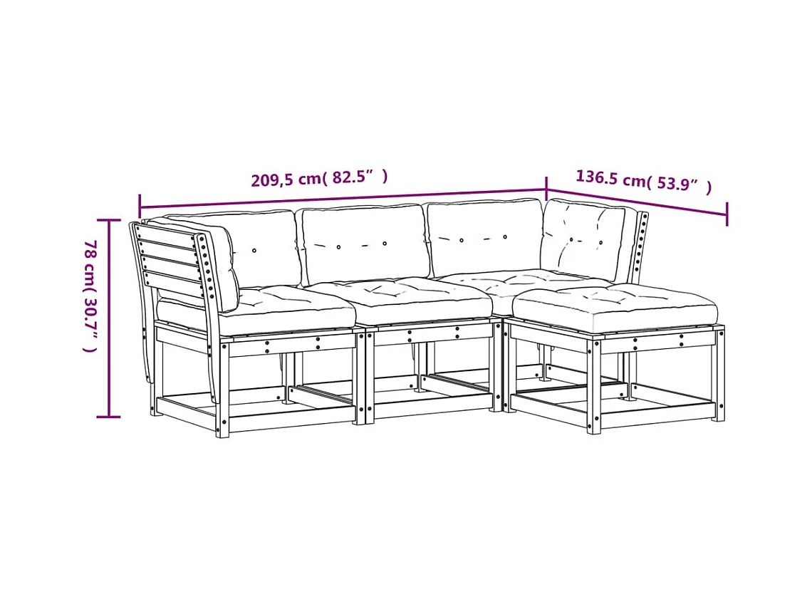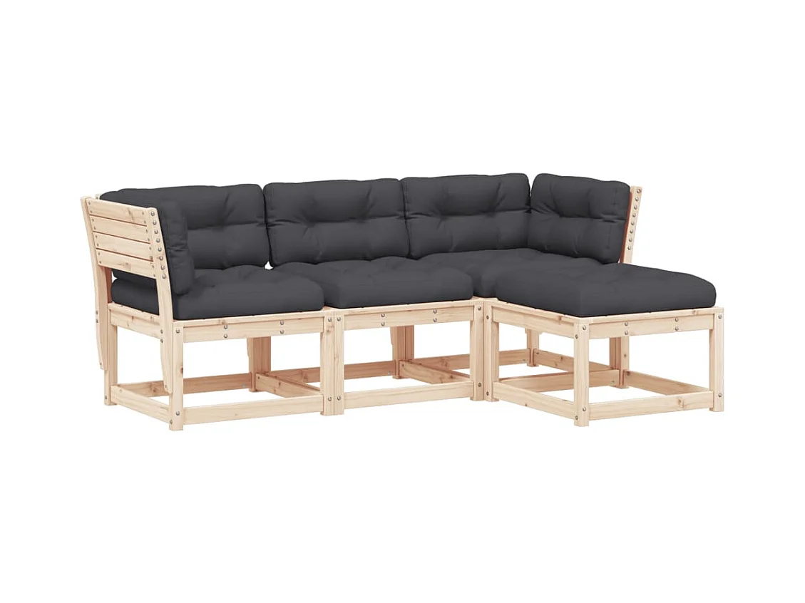 Salon de jardin 4 pcs avec coussins Bois de pin massif