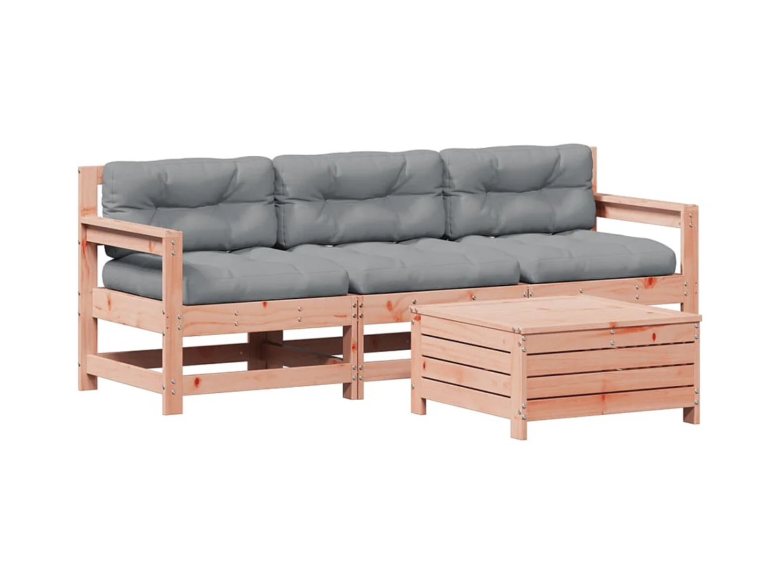 Salon de jardin 4 pcs avec coussins bois massif douglas