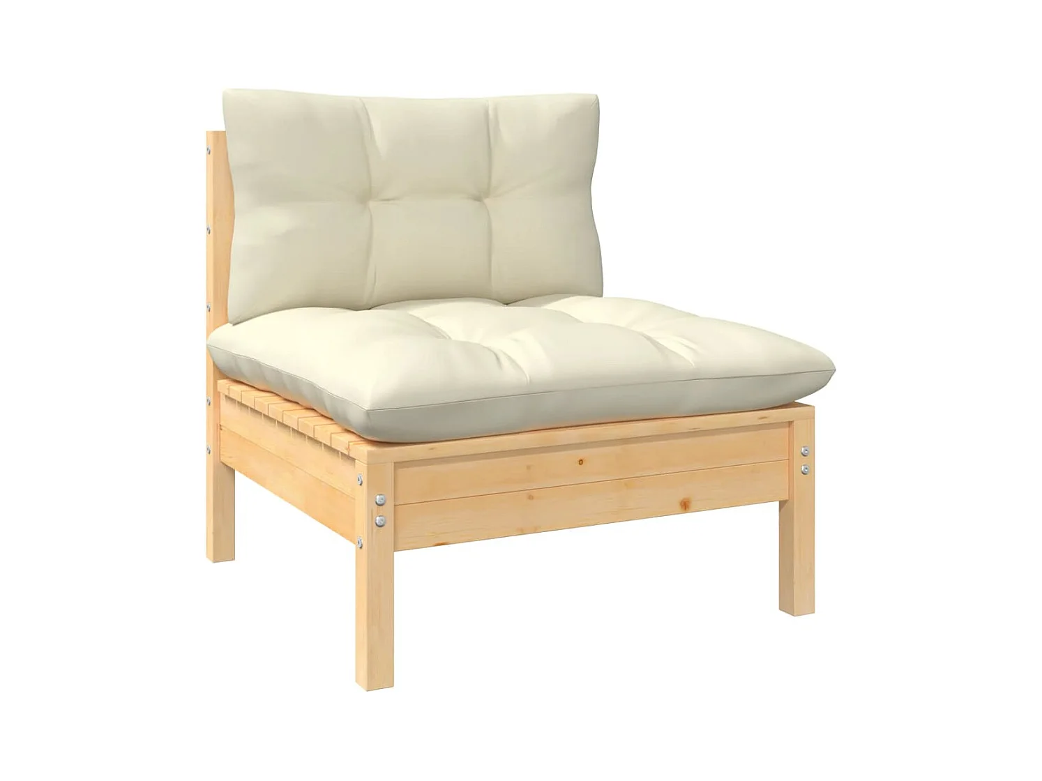 Salon de jardin 5 pcs avec coussins crème bois de pin