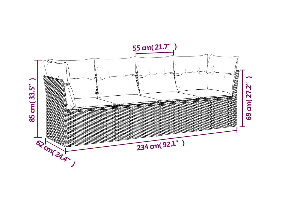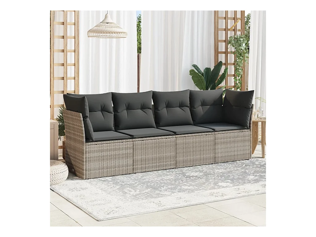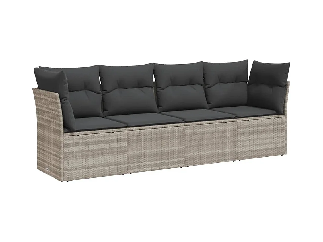 Salon de jardin 4 pcs avec coussins gris clair résine tressée