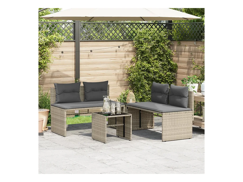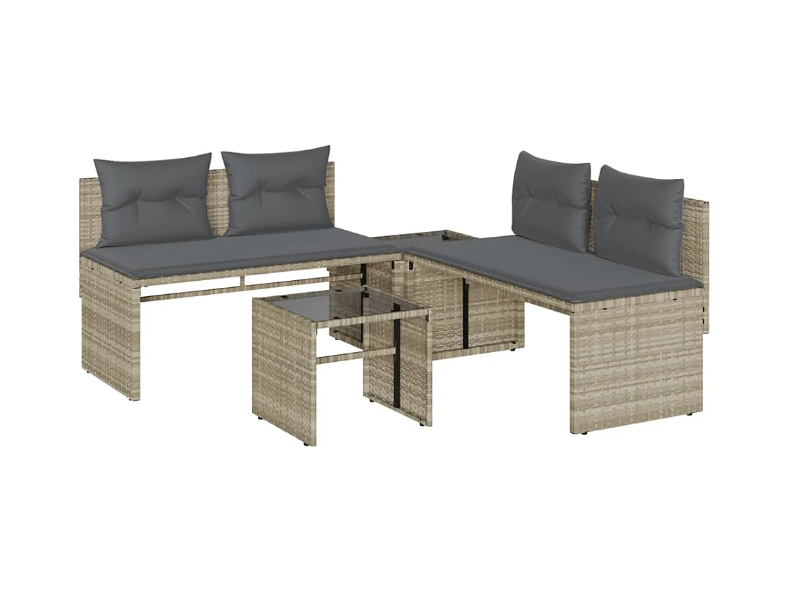 Salon de jardin 4 pcs avec coussins gris clair résine tressée