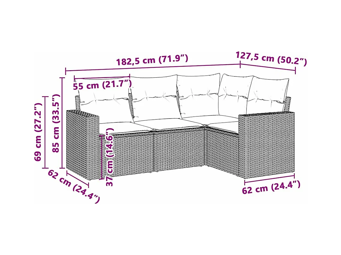 Salon de jardin 4 pcs avec coussins gris clair résine tressée