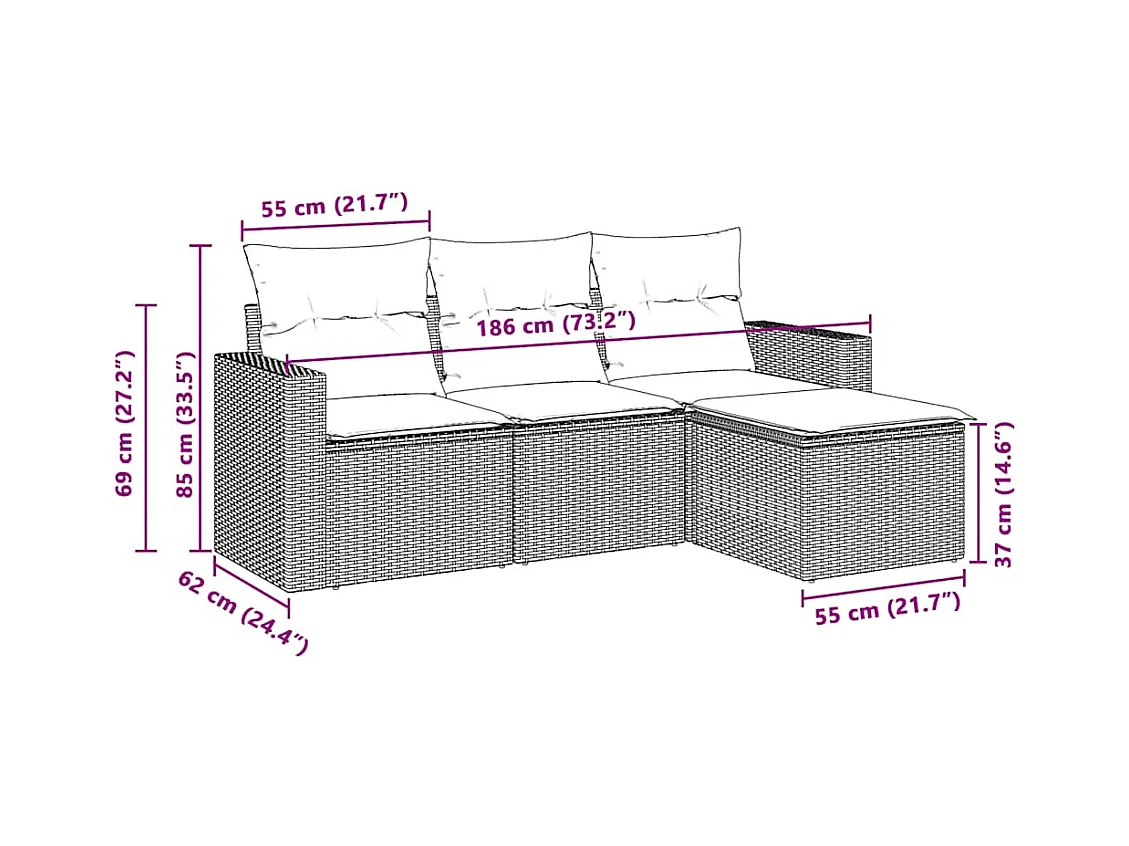 Salon de jardin 4 pcs avec coussins gris clair résine tressée