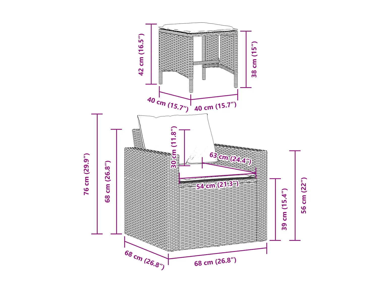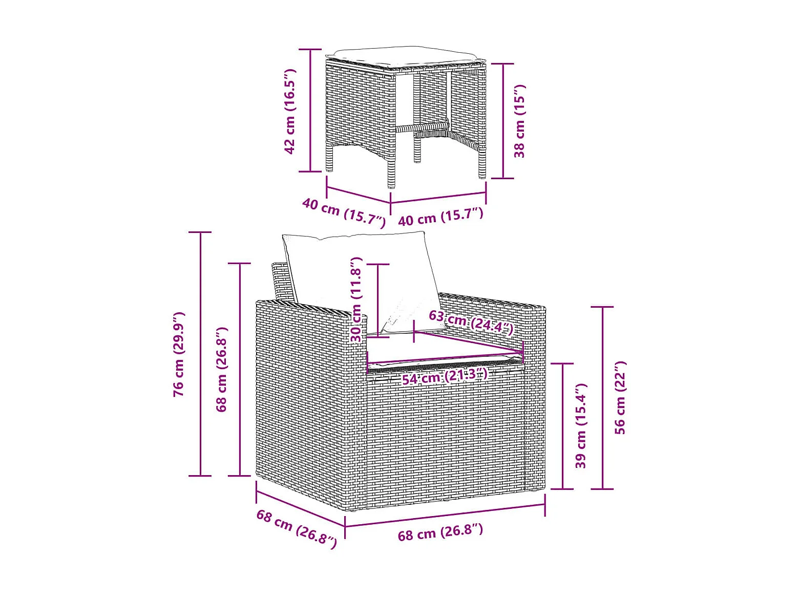 Salon complet de jardin marron