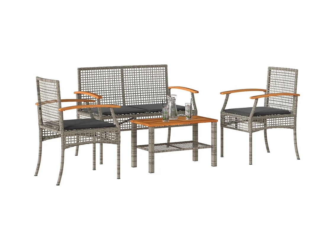 Salon de jardin 4 pcs avec coussins Gris Résine tressée