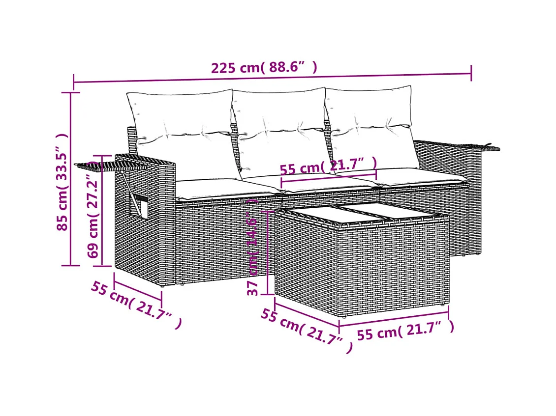 Salon complet de jardin Canapé 2 places et 2 fauteuils