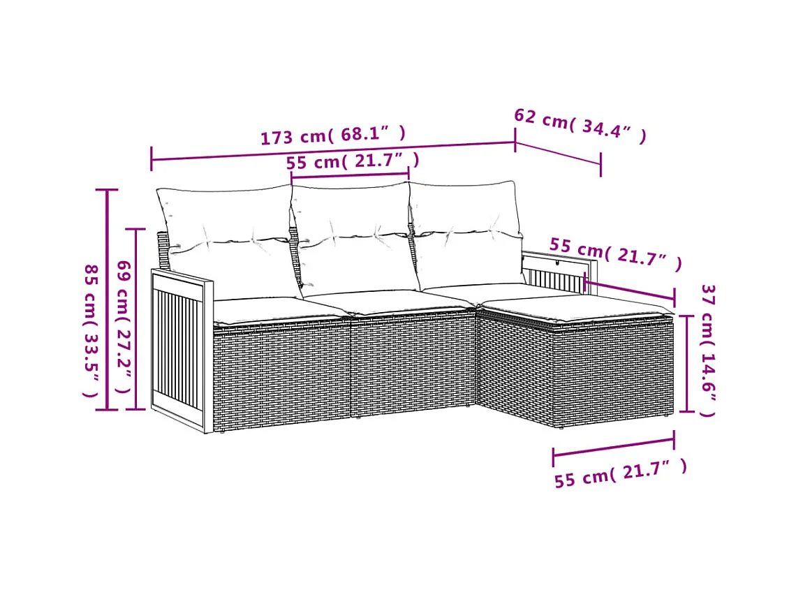 Salon de jardin 4 pcs avec coussins gris résine tressée FR43867