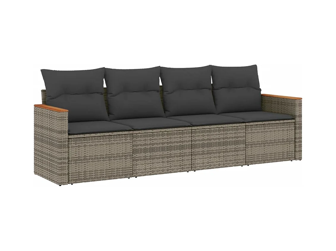 Salon de jardin 4 pcs avec coussins gris résine tressée FR51524