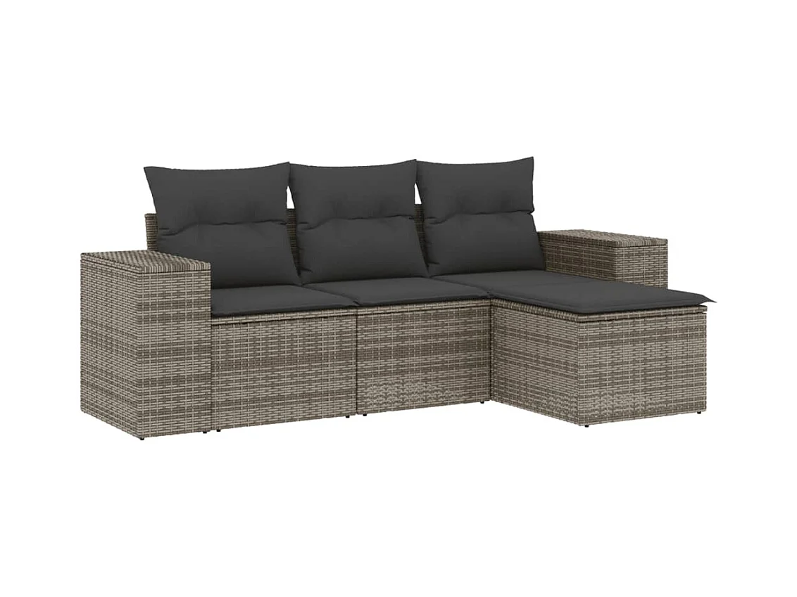 Salon de jardin 4 pcs avec coussins gris résine tressée FR85284