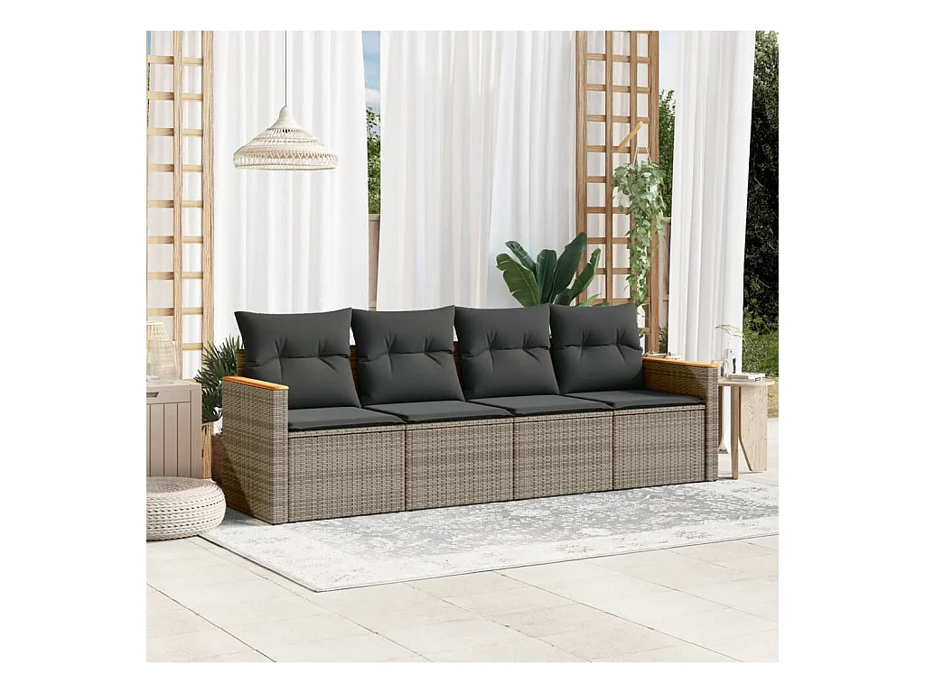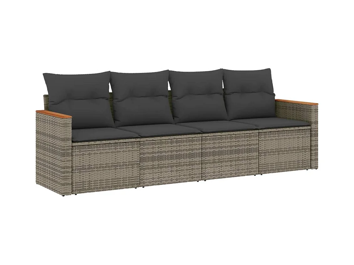 Salon de jardin 4 pcs avec coussins gris résine tressée FR72998