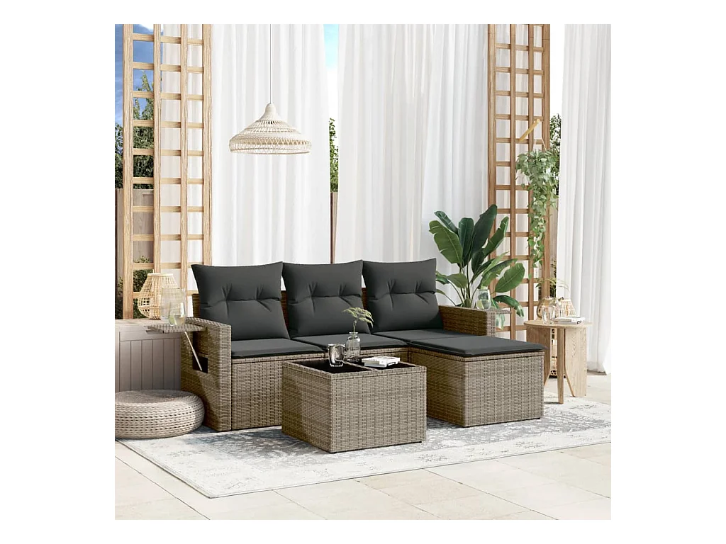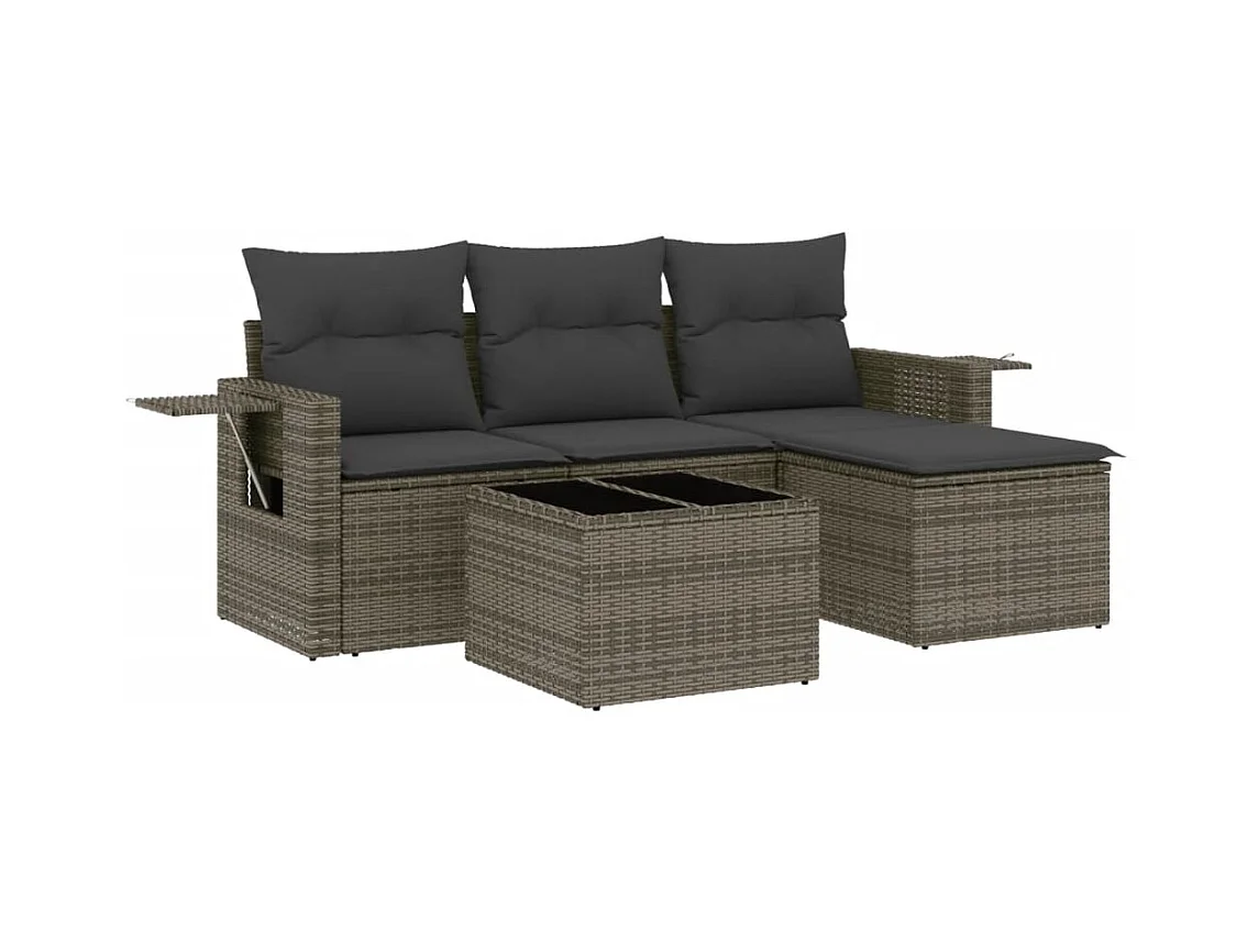Salon de jardin 4 pcs avec coussins gris résine tressée FR85284