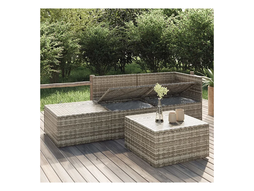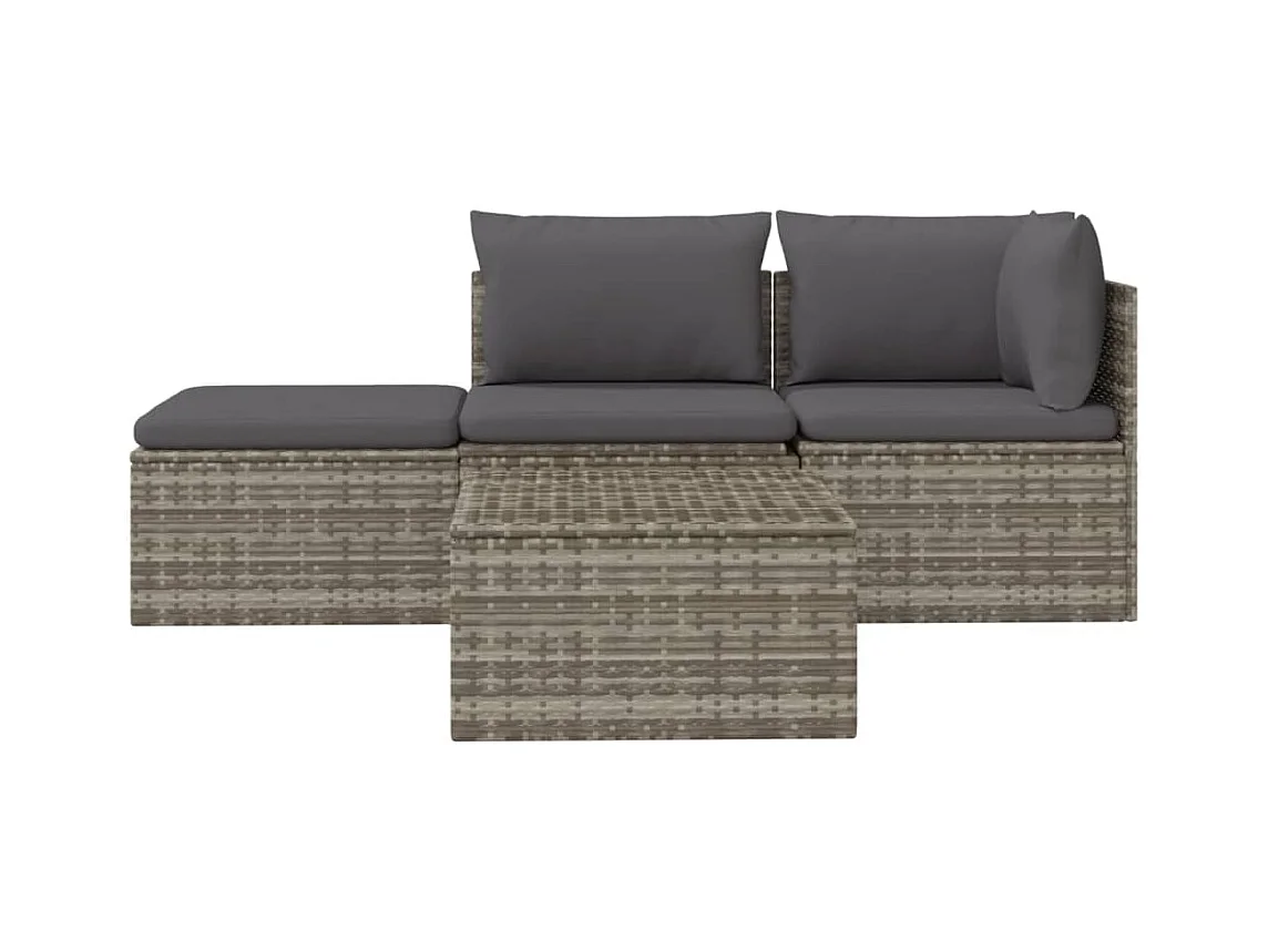 Salon de jardin 4 pcs avec coussins Gris Résine tressée REO92980