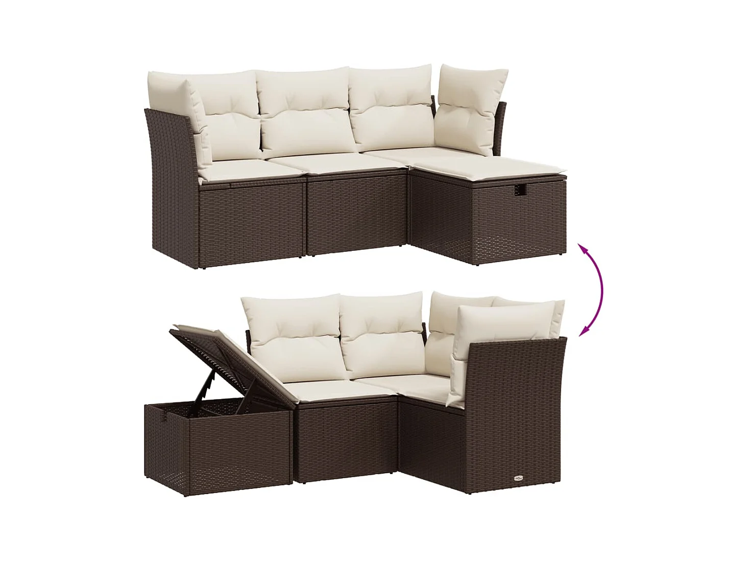 Salon de jardin 4 pcs avec coussins marron résine tressée