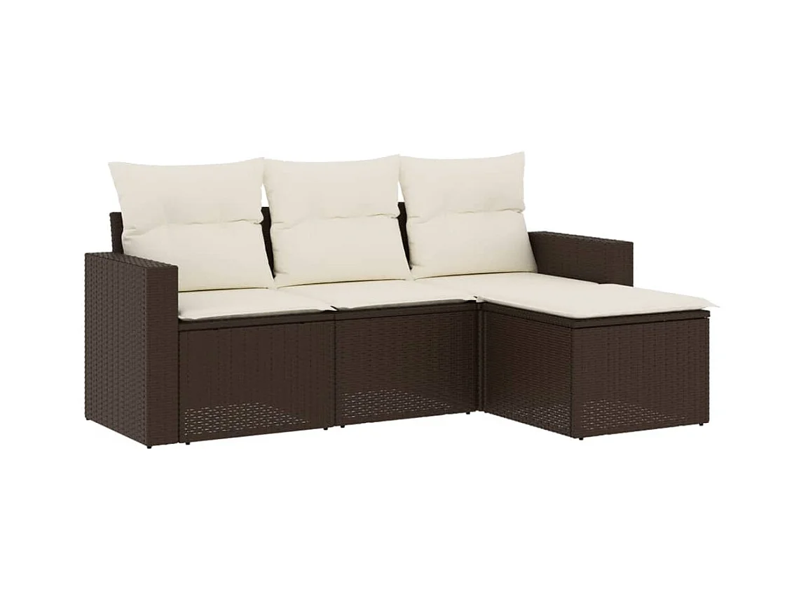 Salon de jardin 4 pcs avec coussins marron résine tressée FR84048