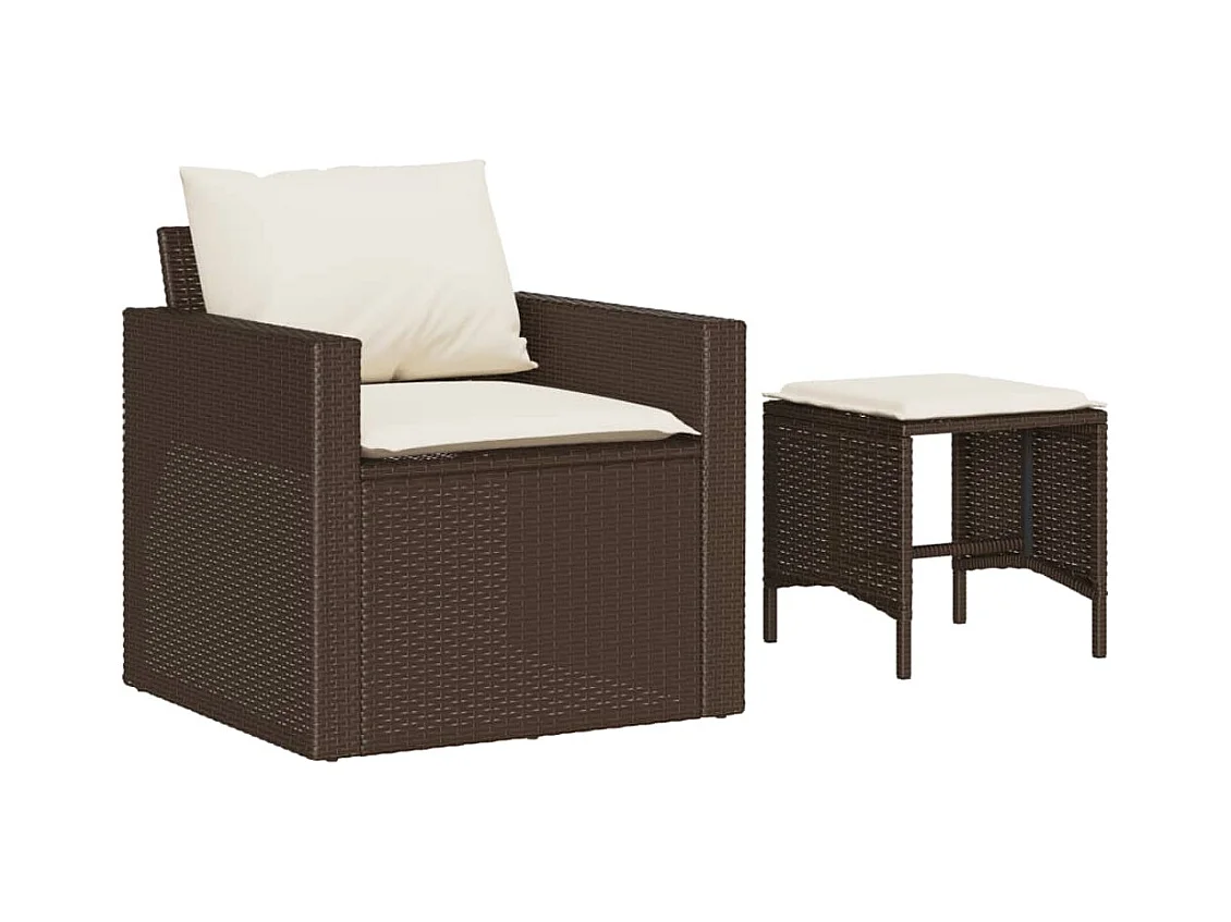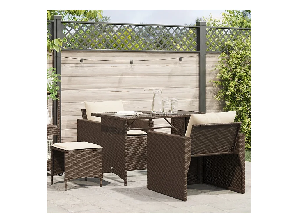 Salon de jardin 4 pcs avec coussins marron résine tressée FR49765