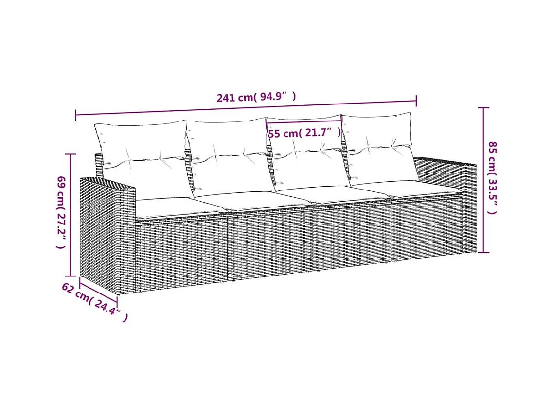Salon de jardin 4 pcs avec coussins marron résine tressée FR24308