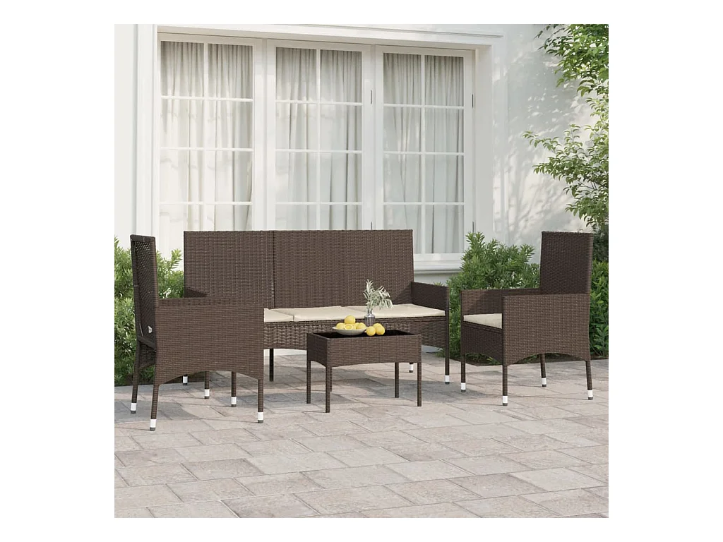 Salon de jardin 4 pcs avec coussins Marron Résine tressée BE68219