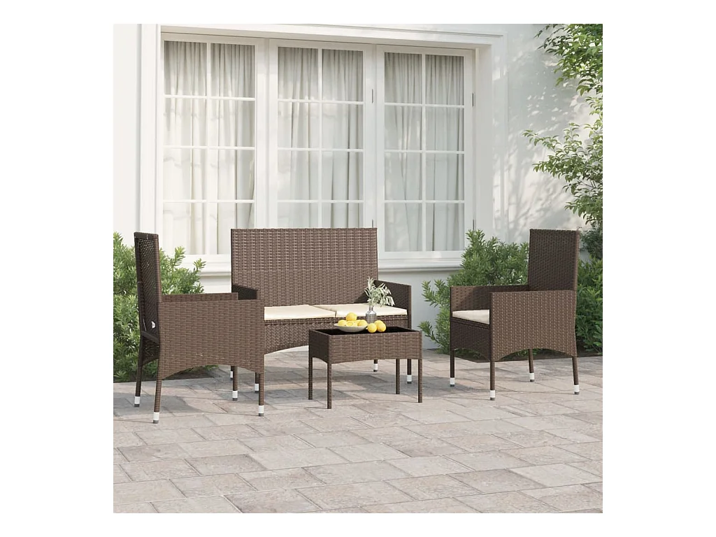 Salon de jardin 4 pcs avec coussins Marron Résine tressée BE68219