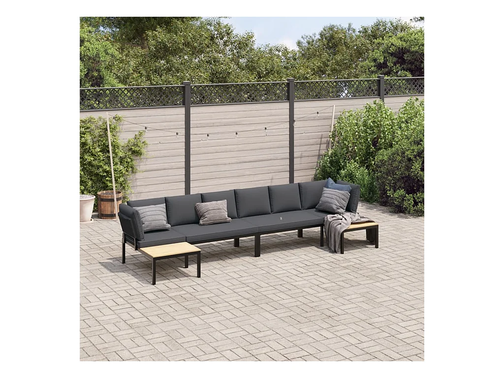 Salon de jardin 5 pcs avec coussins noir aluminium