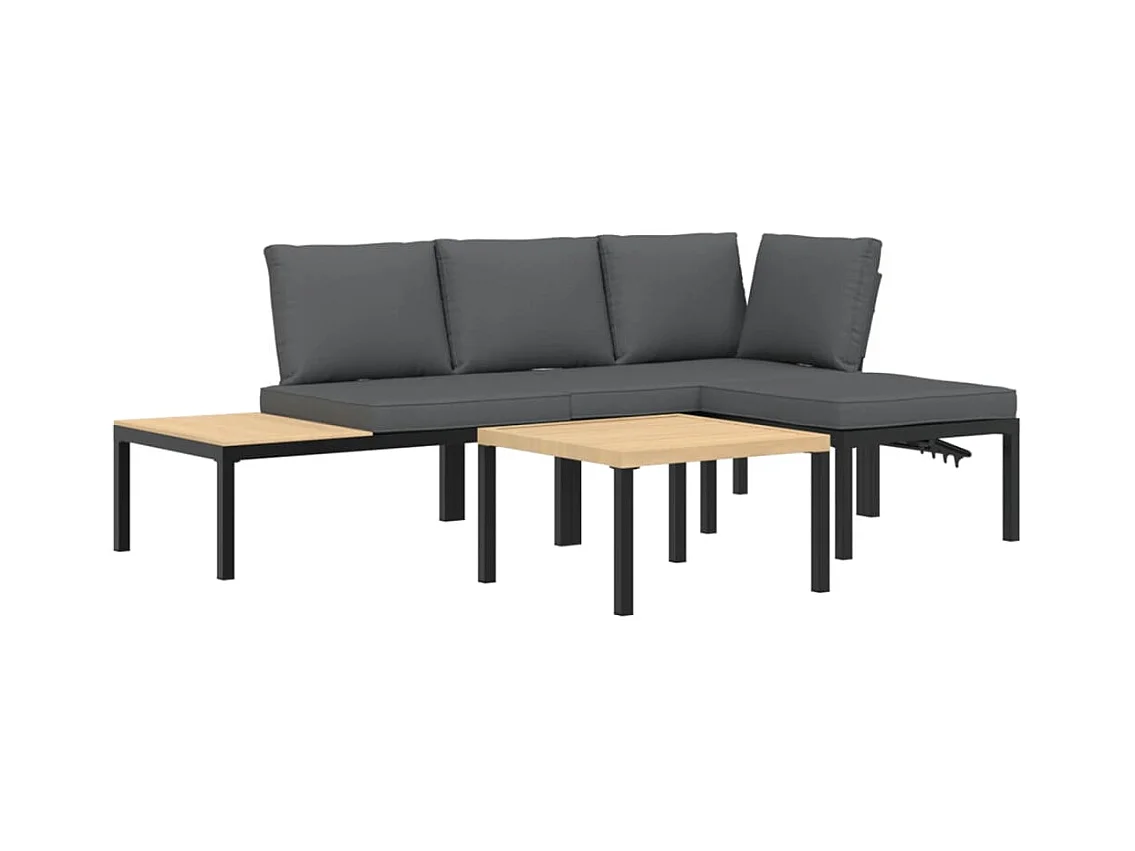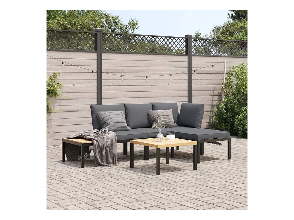 Salon de jardin 4 pcs avec coussins noir aluminium