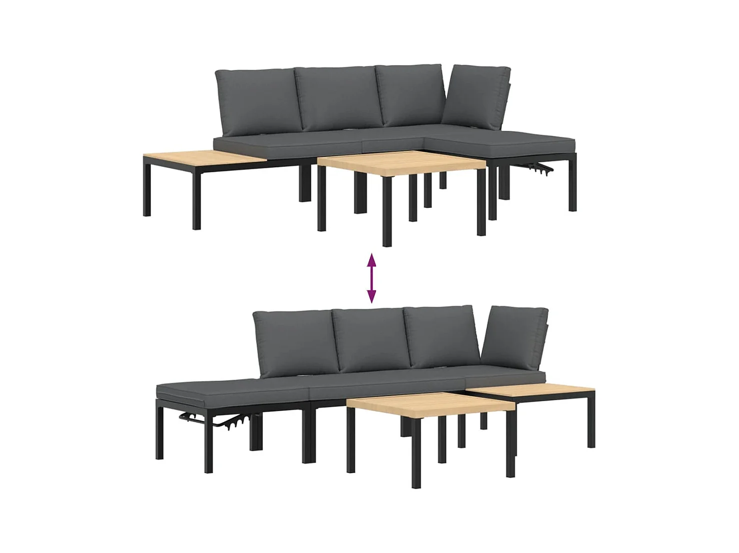 Salon de jardin 5 pcs avec coussins noir aluminium