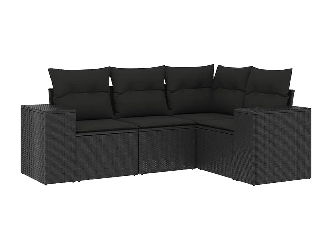 Salon de jardin 4 pcs avec coussins noir résine tressée