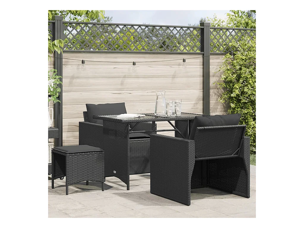 Salon de jardin 4 pcs avec coussins noir résine tressée