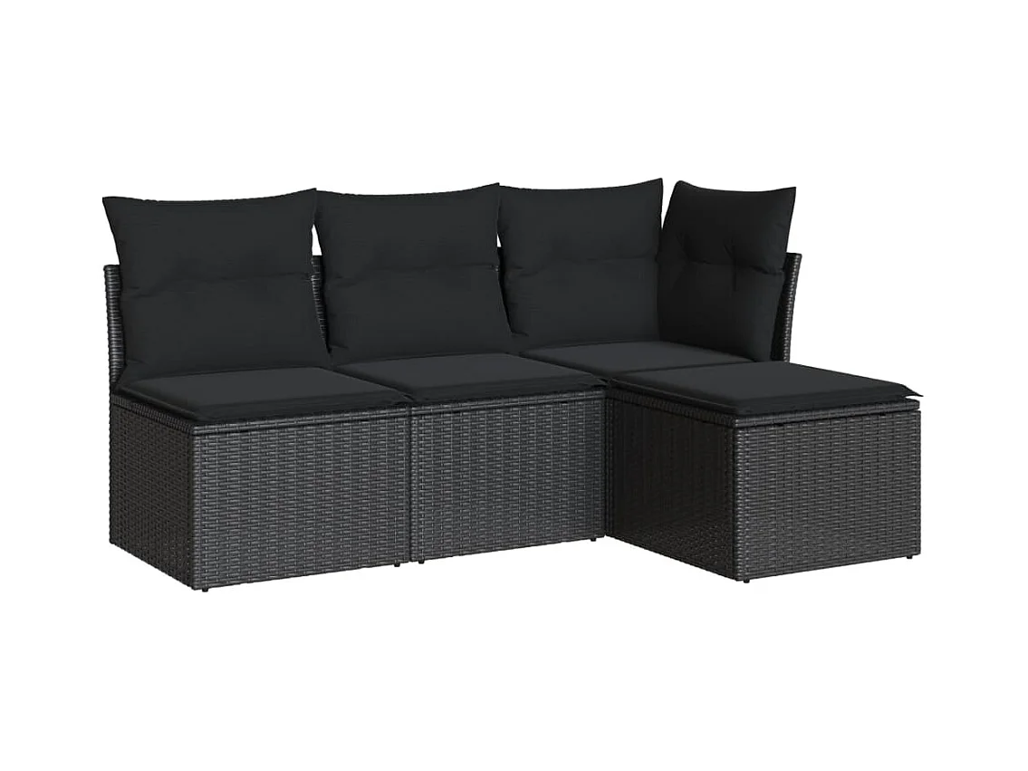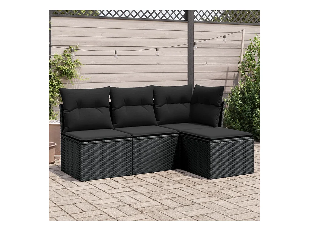 Salon de jardin 4 pcs avec coussins noir résine tressée