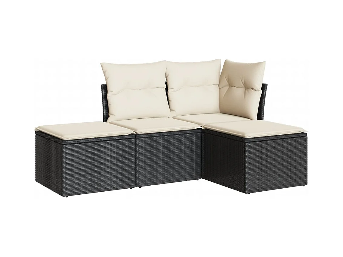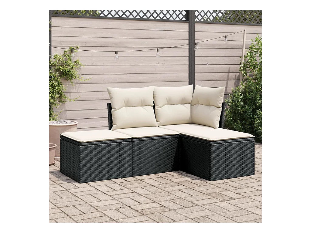 Salon de jardin 4 pcs avec coussins noir résine tressée