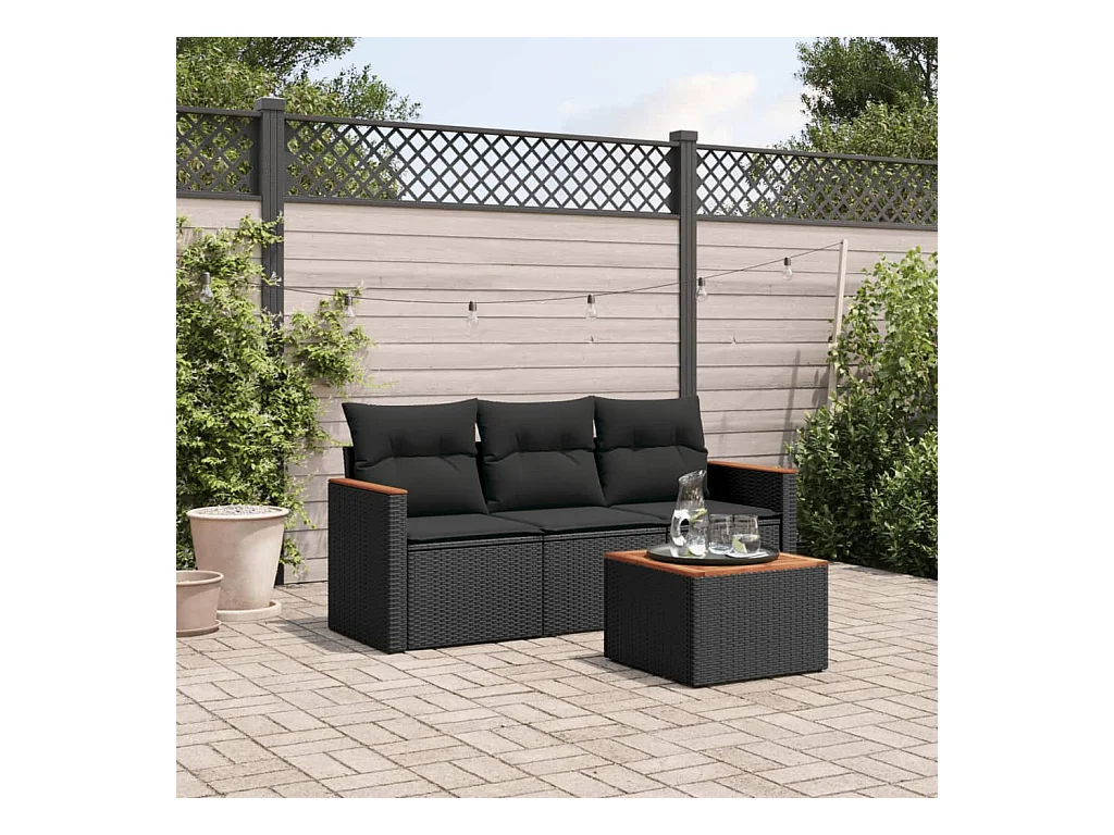 Salon de jardin 4 pcs avec coussins noir résine tressée FR14281