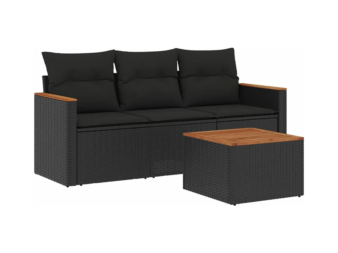 Salon de jardin 4 pcs avec coussins noir résine tressée FR71594