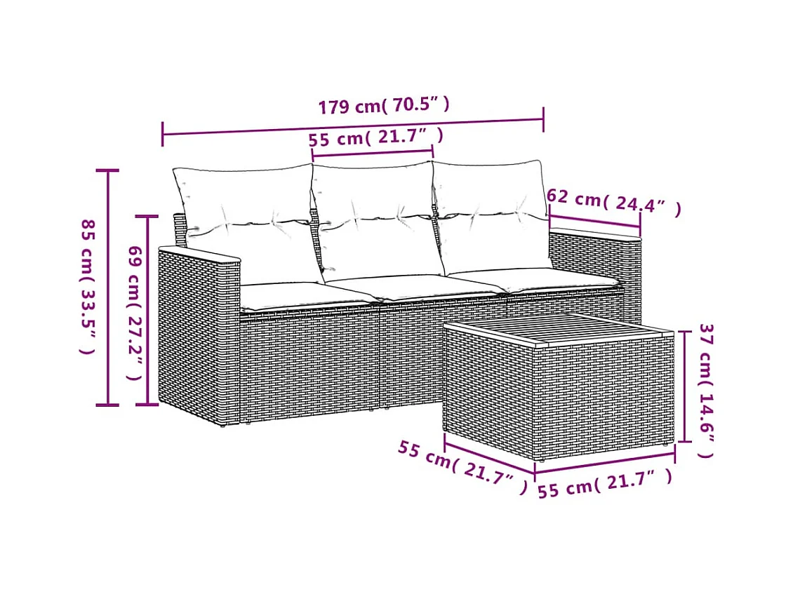Salon complet de jardin Canapé 2 places et 2 fauteuils