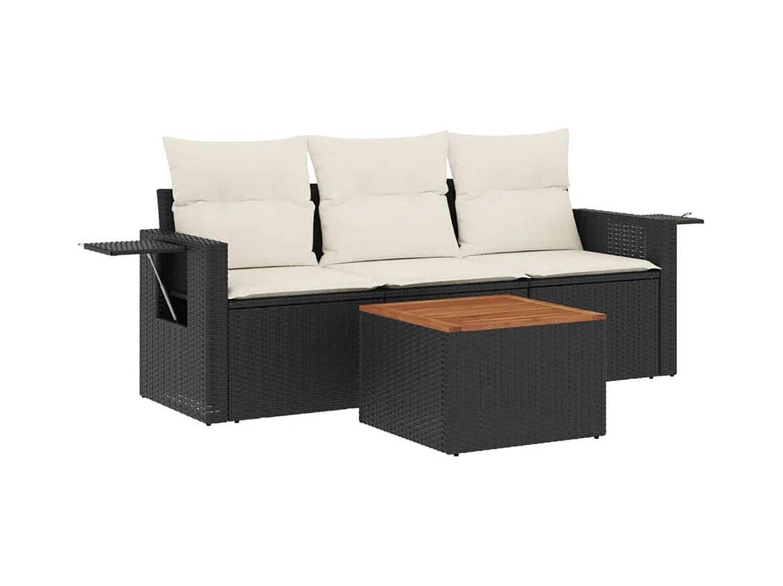 Salon de jardin 4 pcs avec coussins noir résine tressée FR25445
