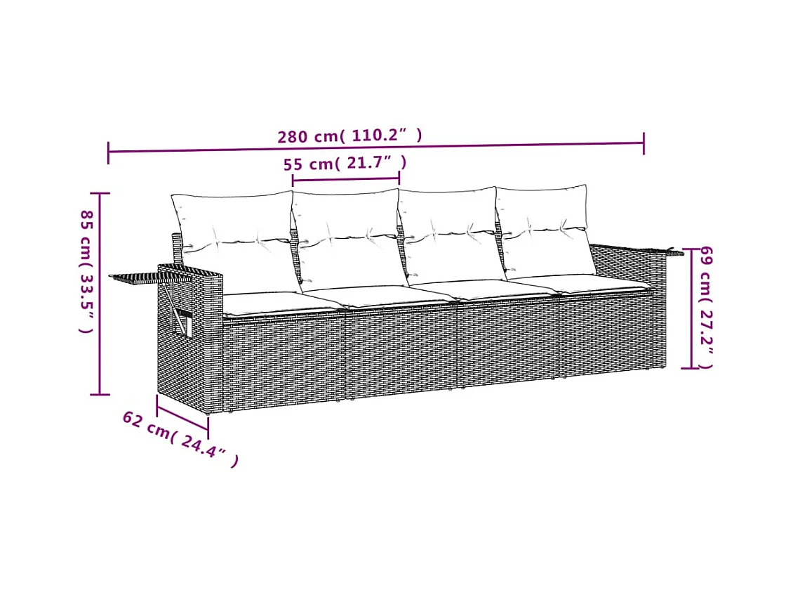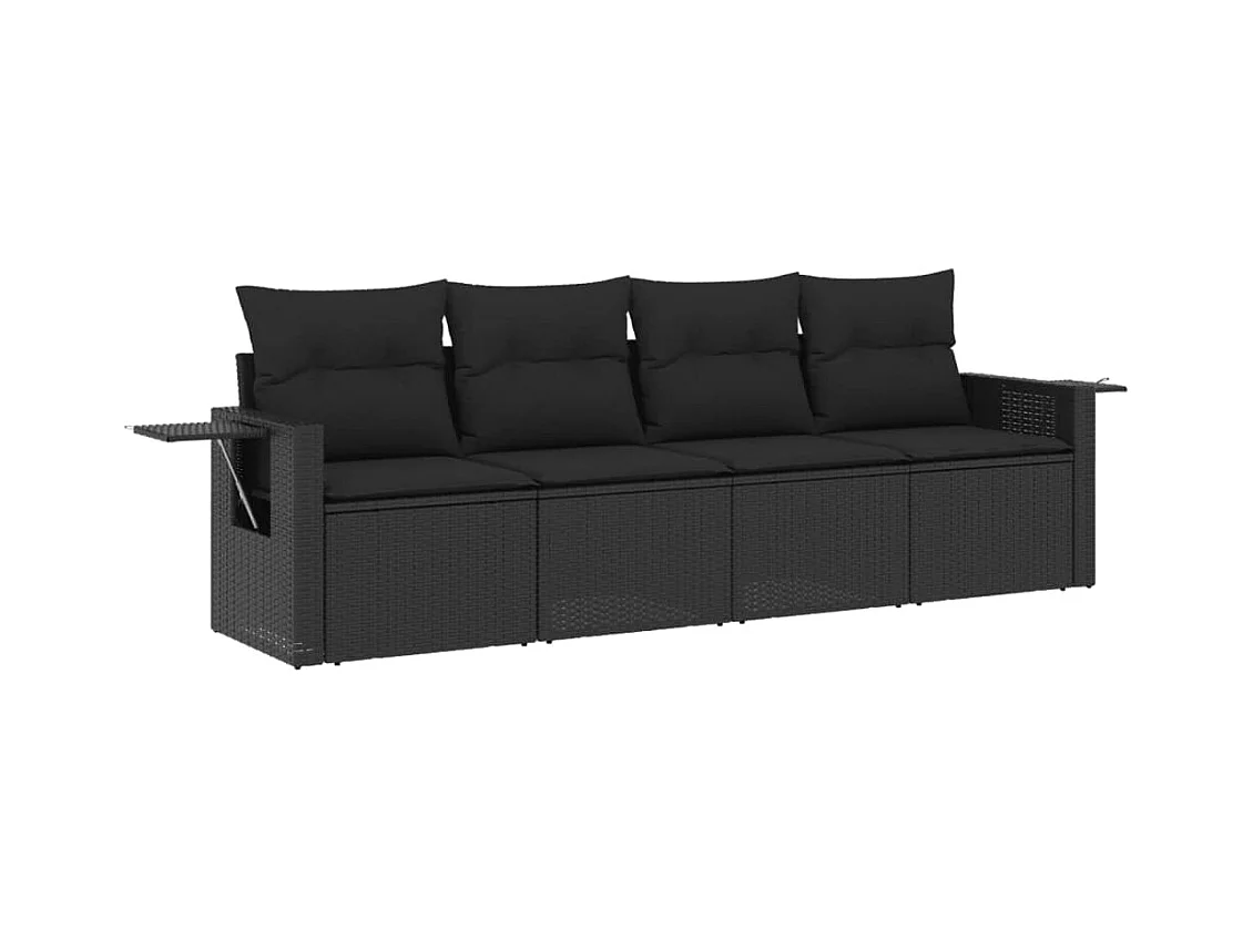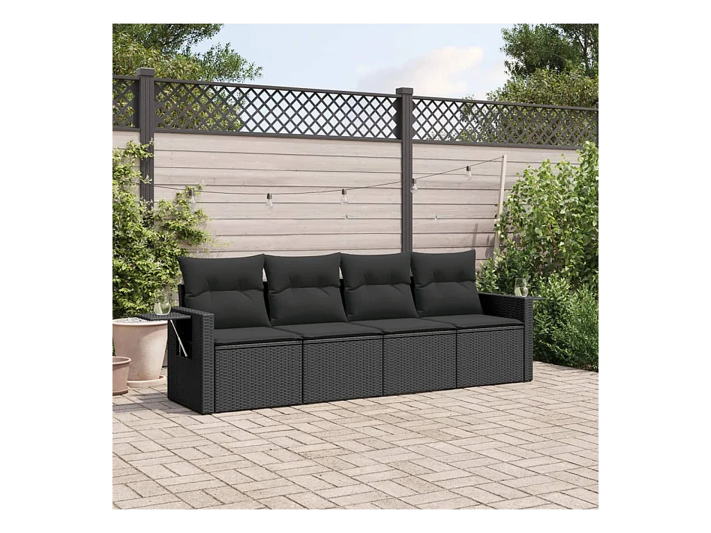 Salon de jardin 4 pcs avec coussins noir résine tressée FR14281