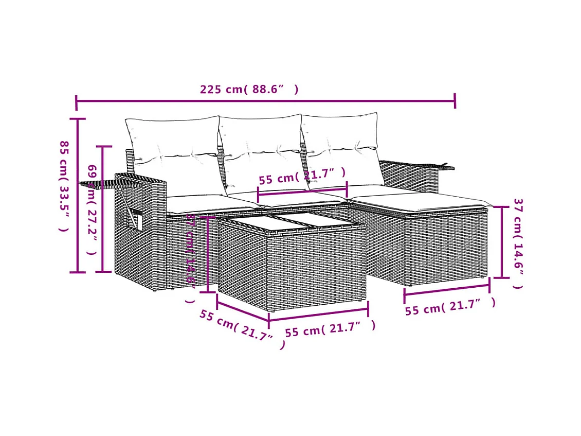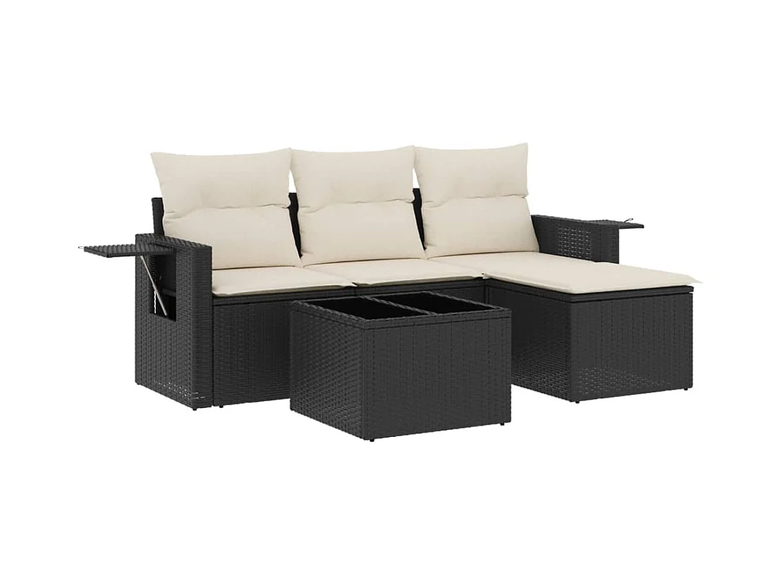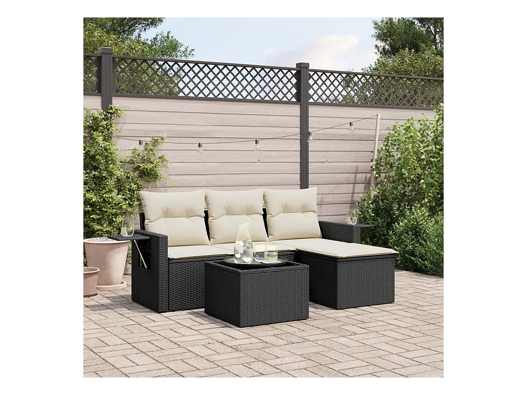 Salon de jardin 4 pcs avec coussins noir résine tressée FR51806