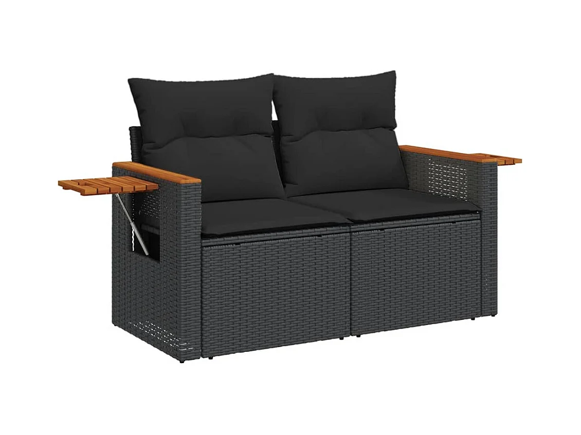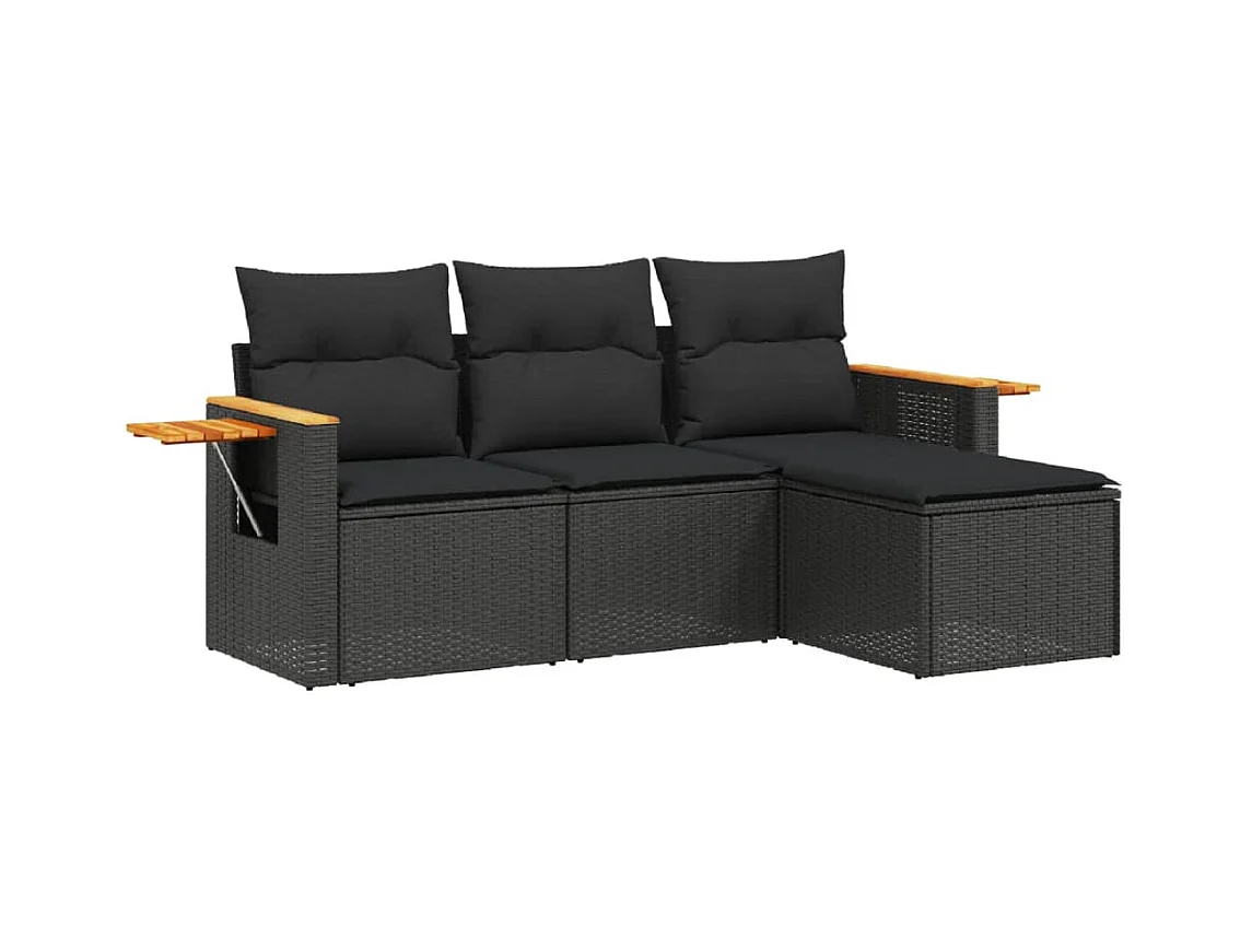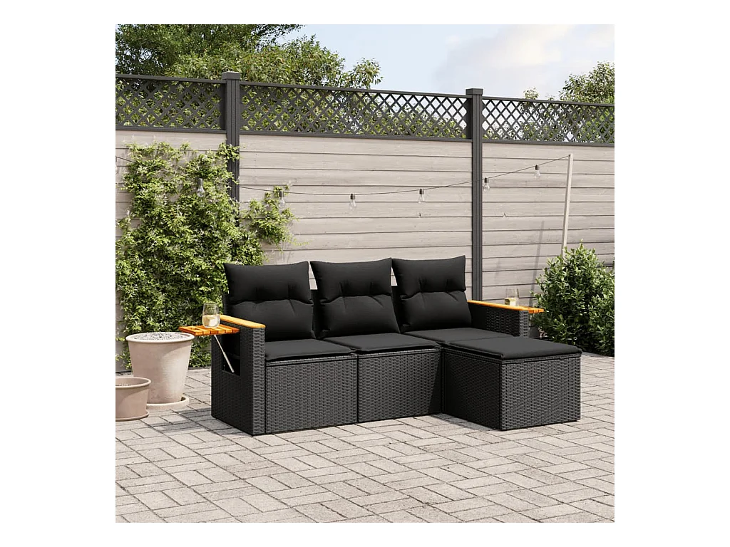 Salon de jardin 4 pcs avec coussins noir résine tressée FR15294