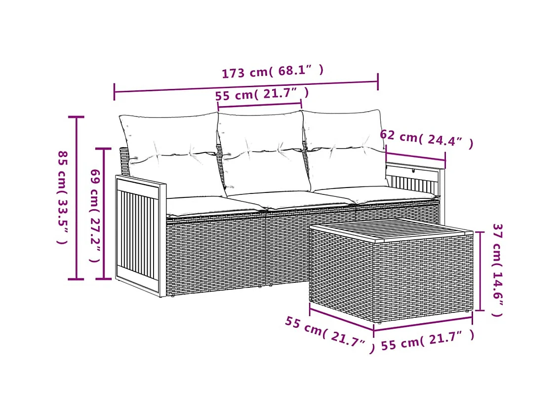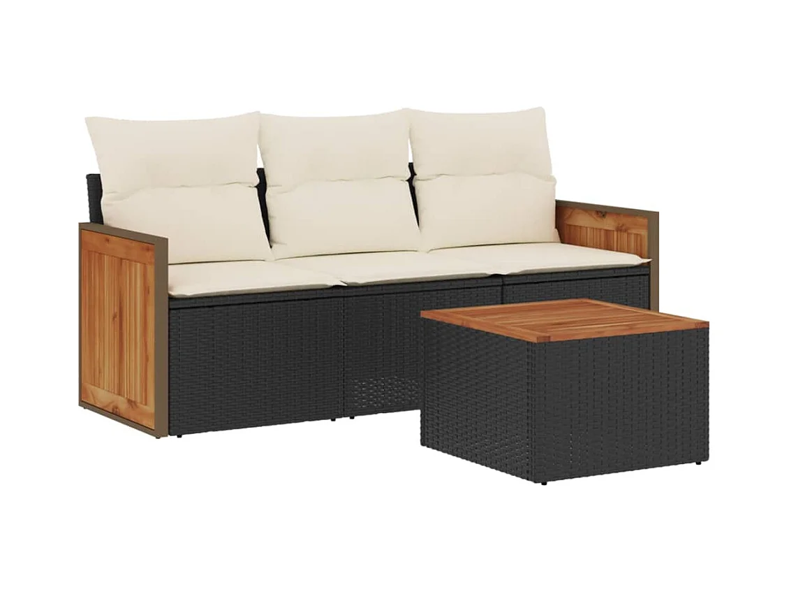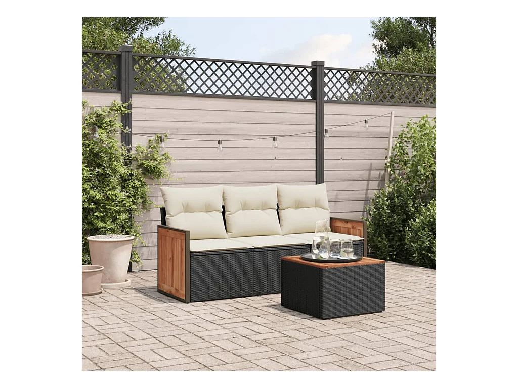 Salon de jardin 4 pcs avec coussins noir résine tressée FR54496