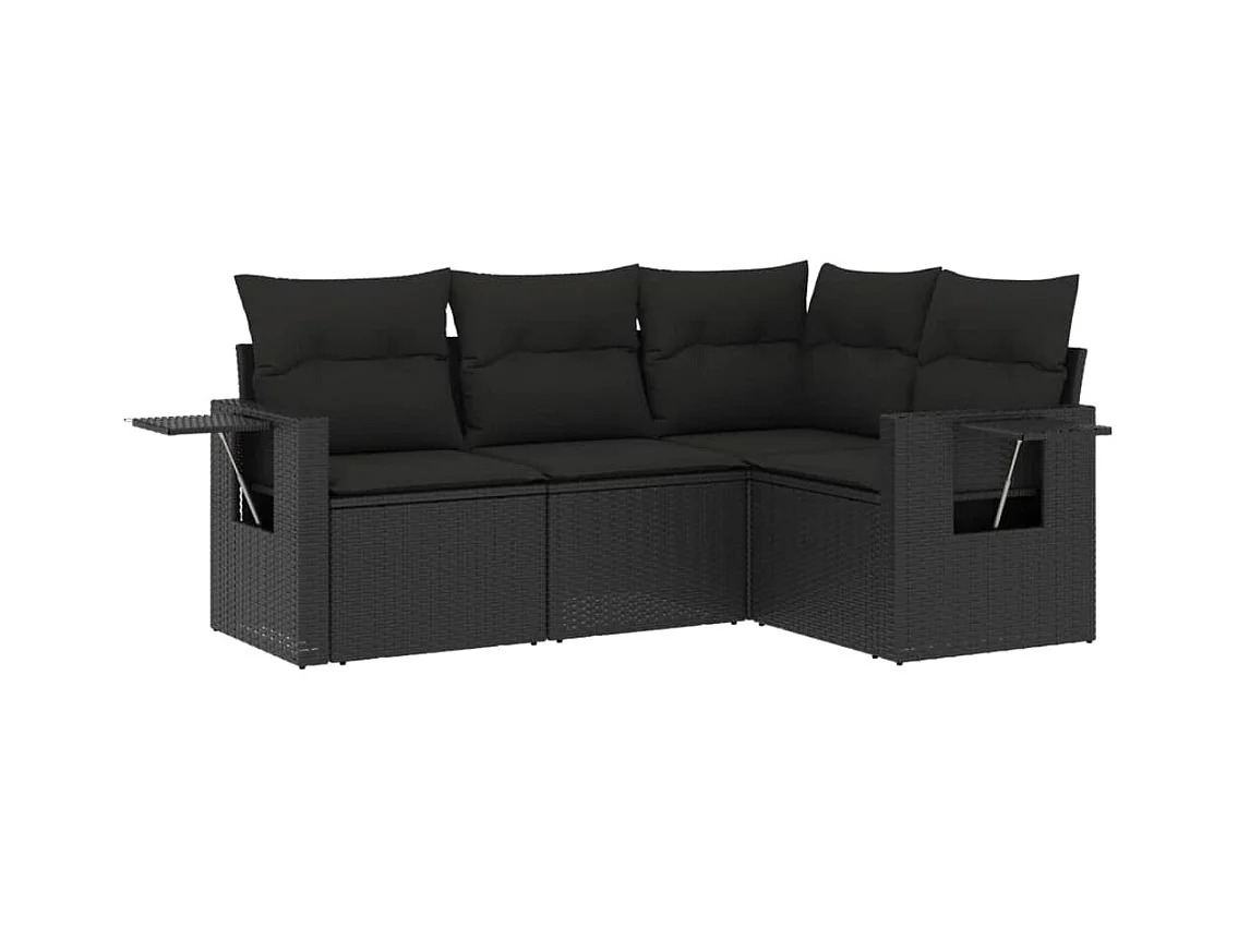 Salon de jardin 4 pcs avec coussins noir résine tressée FR79719