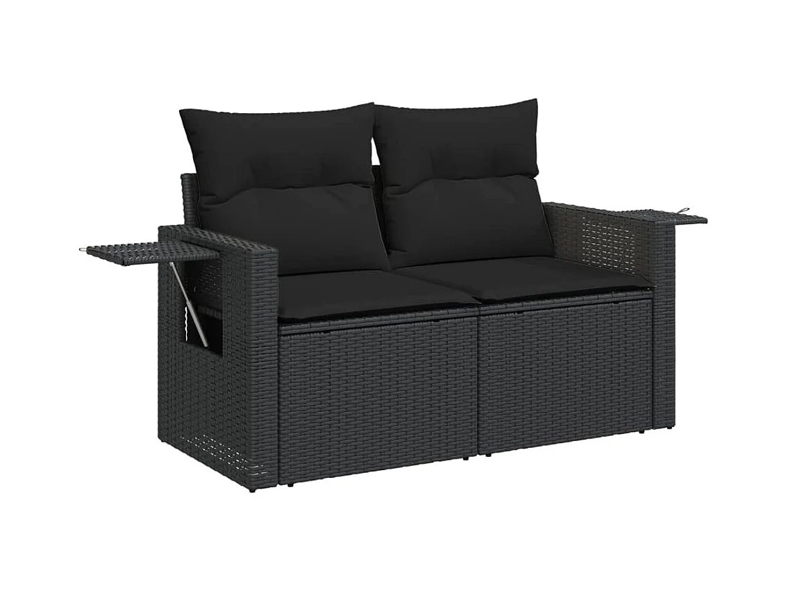 Salon de jardin 4 pcs avec coussins noir résine tressée FR15294