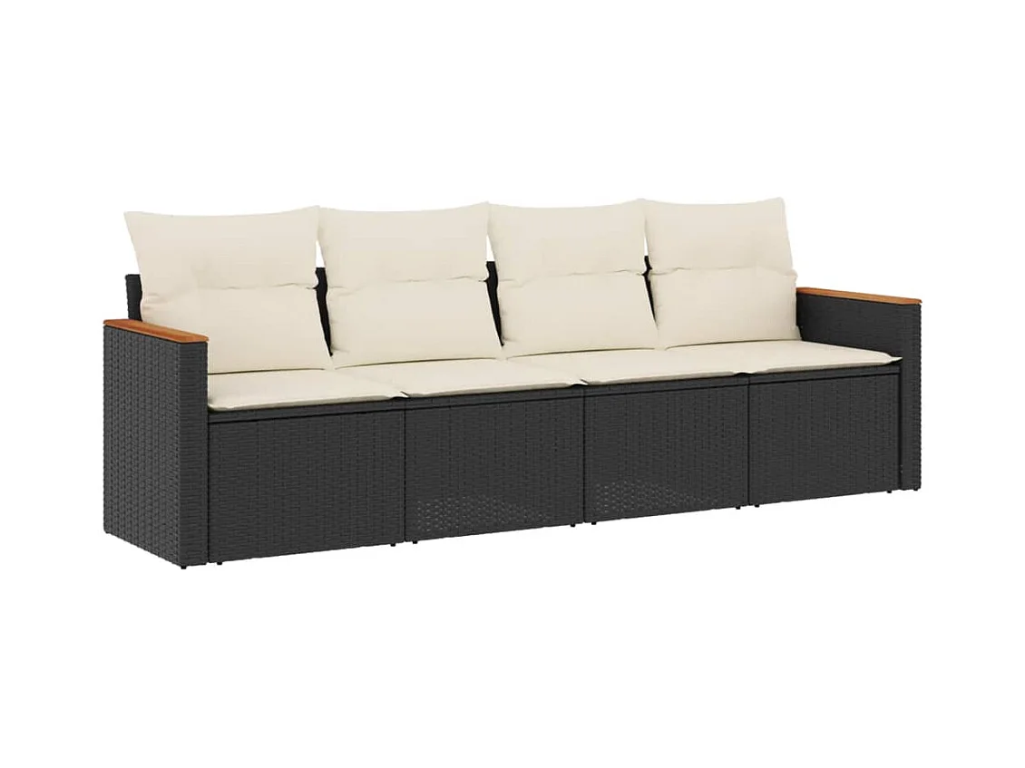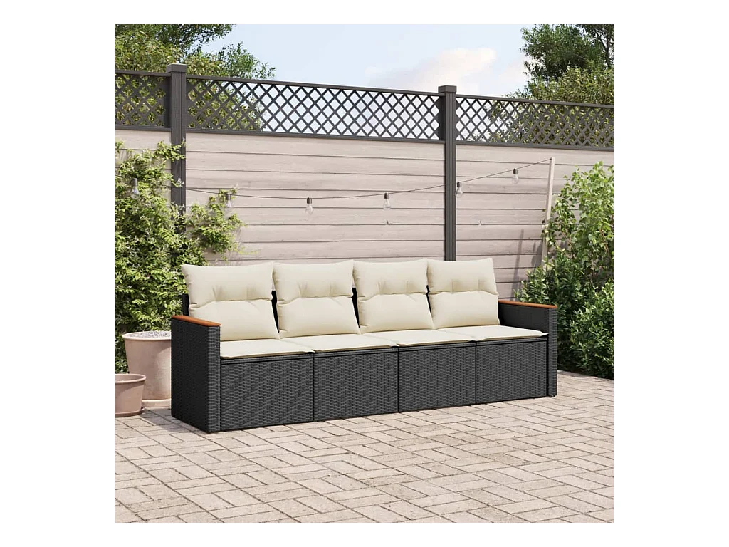 Salon de jardin 4 pcs avec coussins noir résine tressée FR67506