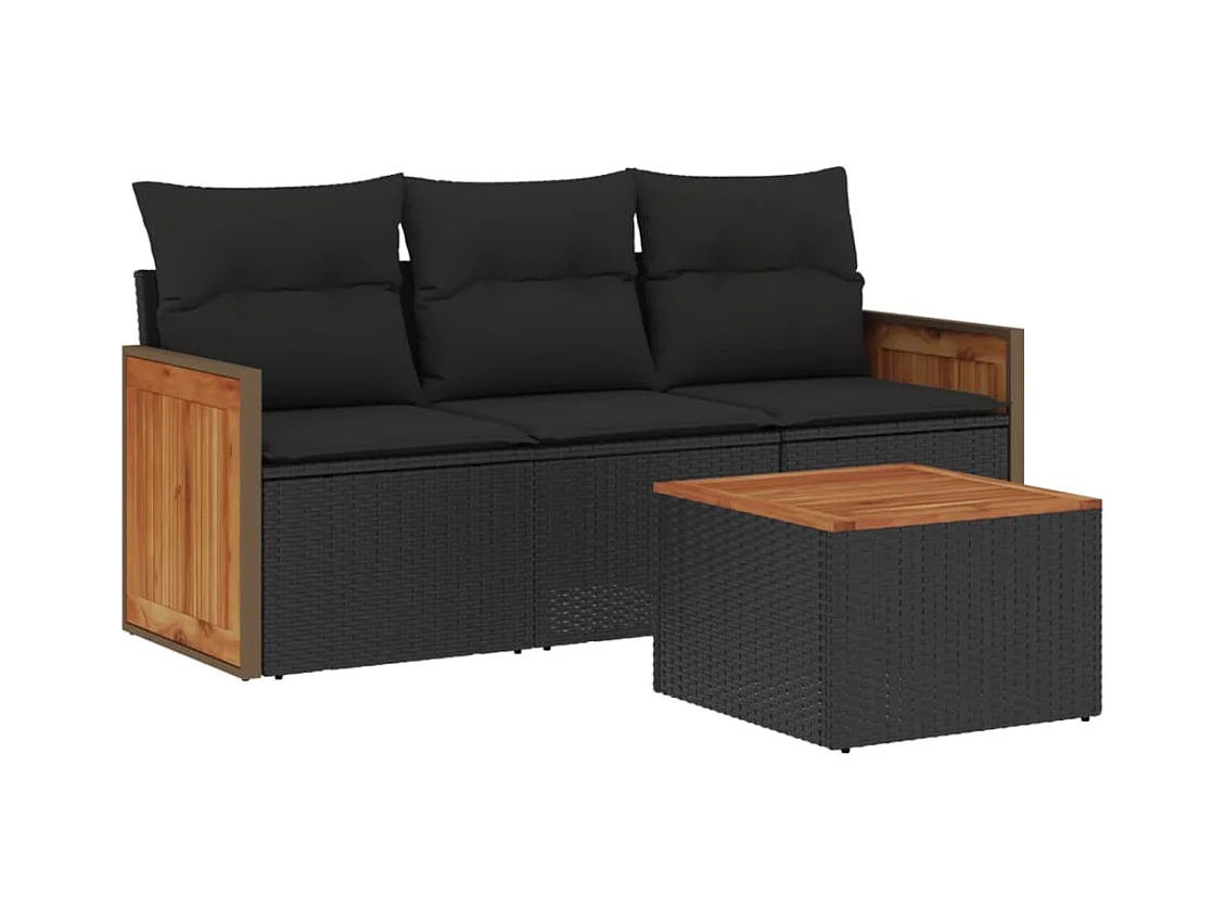 Salon de jardin 4 pcs avec coussins noir résine tressée FR29821