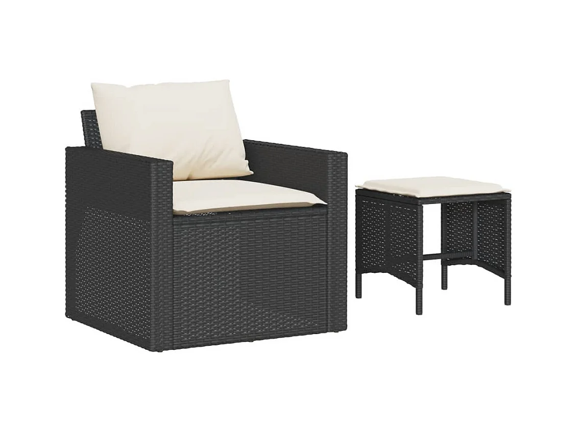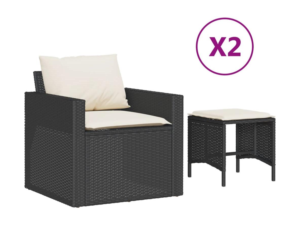 Salon de jardin 4 pcs avec coussins noir résine tressée FR74445