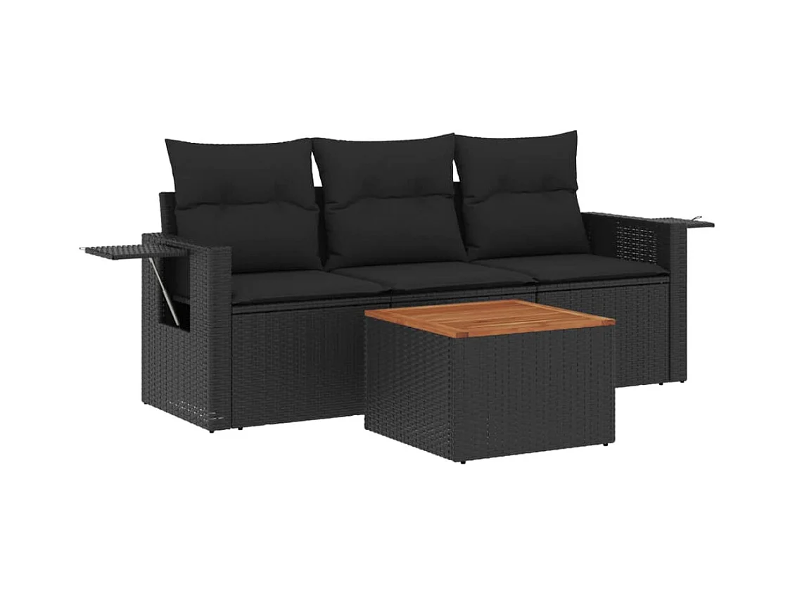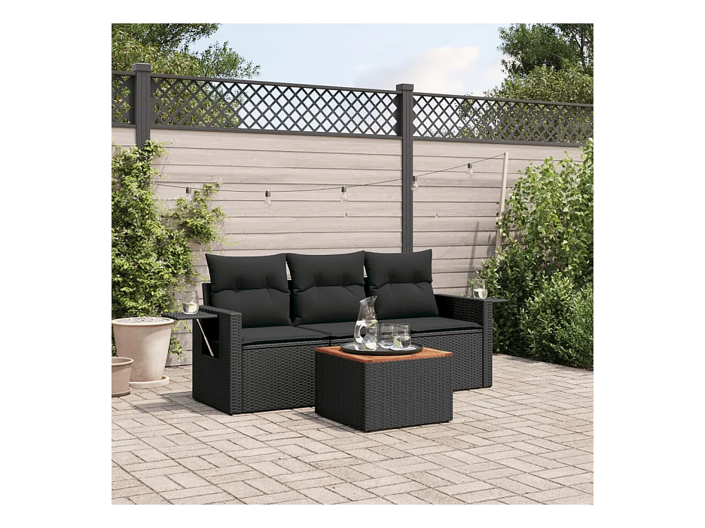 Salon de jardin 4 pcs avec coussins noir résine tressée FR85006