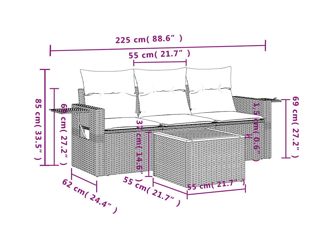 Salon complet de jardin Canapé 2 places et 2 fauteuils