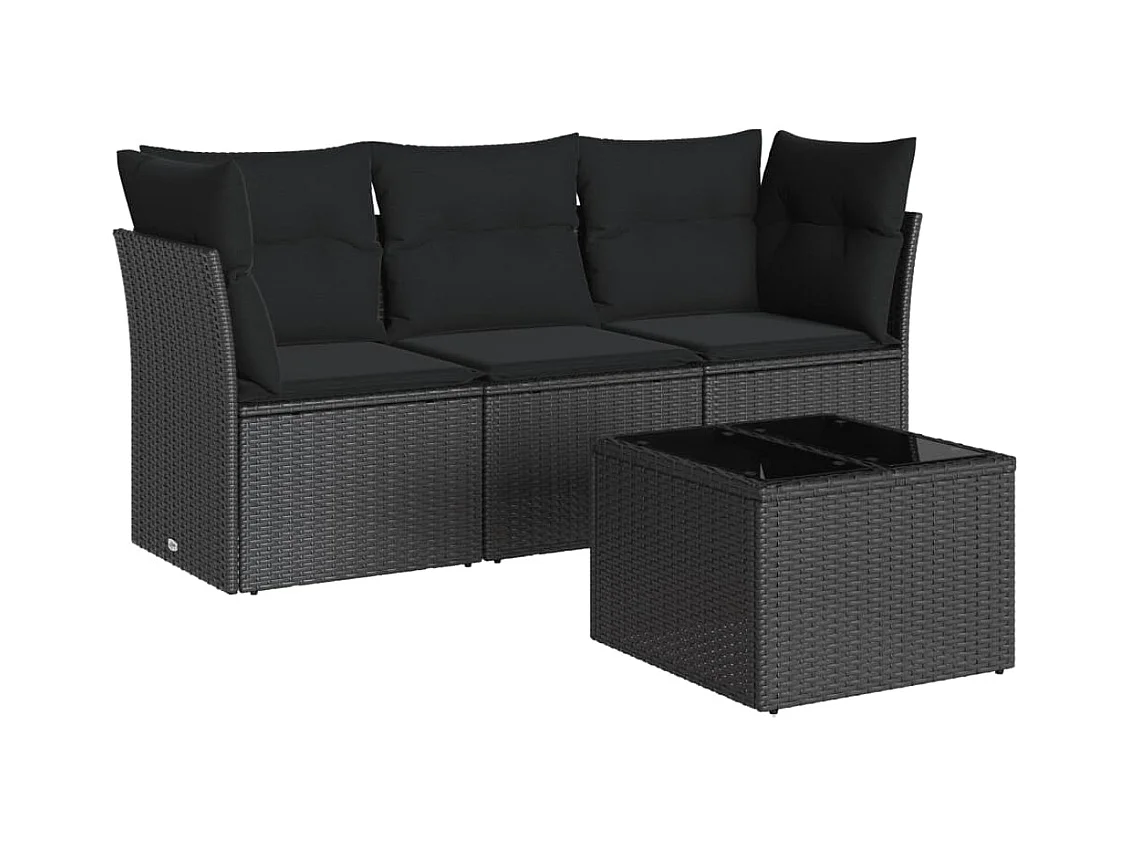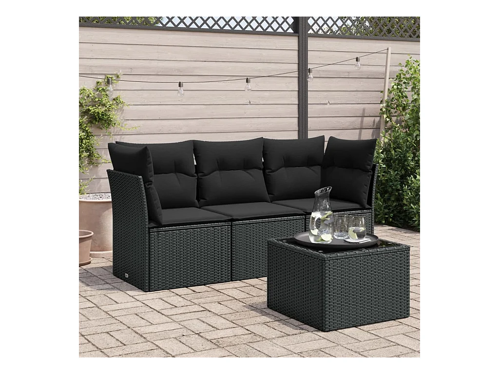 Salon de jardin 4 pcs avec coussins noir résine tressée BE31873