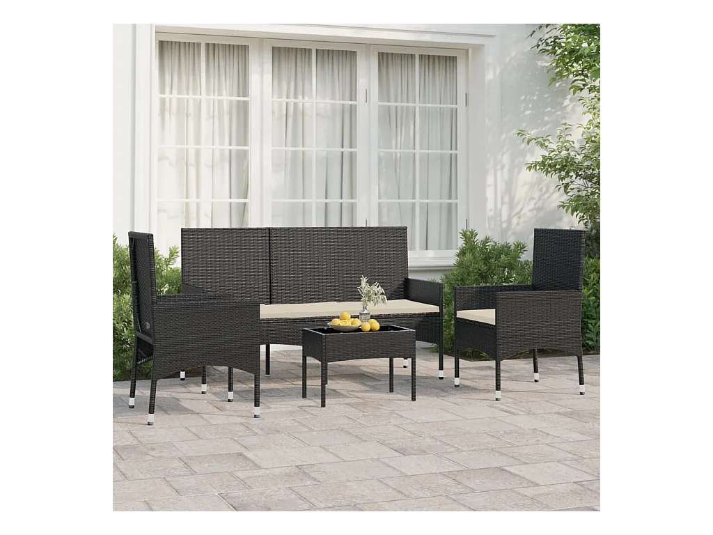 Salon de jardin 4 pcs avec coussins Noir Résine tressée SSG73766
